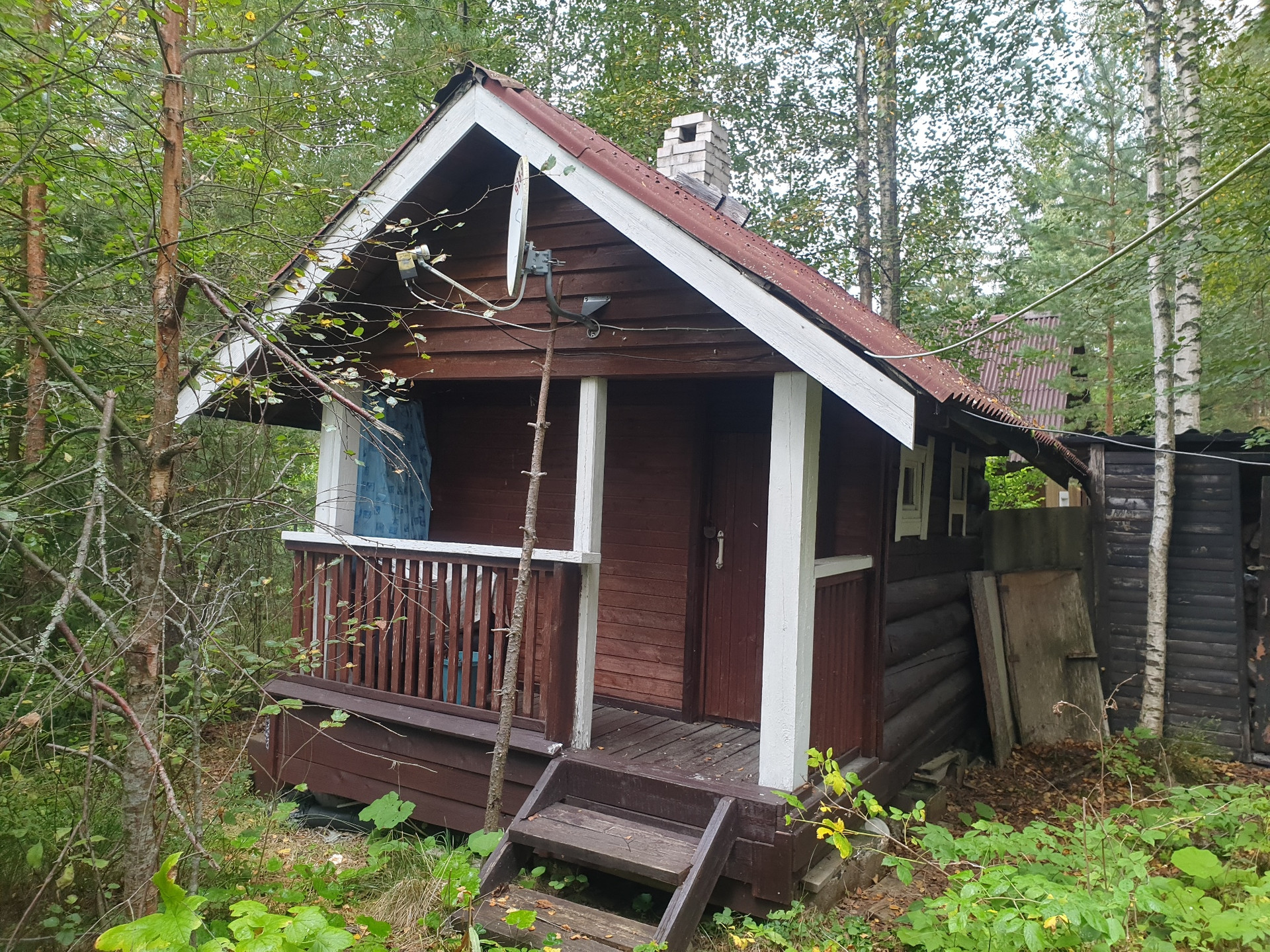 СНТ "Лужки". Участок очень зелёный. На нём в 2012 г. построено несколько строений: дом (4 комнаты метров по 5-7) с печкой, баня с печкой, летняя кухня (порядка 10м), туалет, сарай – пристройка к дому. Всё готово для жилья. Зона для шашлыков. Электричество, газ в баллонах. Колодец с чистой питьевой водой. На участке растут грибы, черника и брусника. В СНТ есть детская площадка. В 3 км «детское» озеро - Верховье, «взрослое» озеро Высокинское – в 9 км, Финский залив – в 3 км. Отличные соседи.