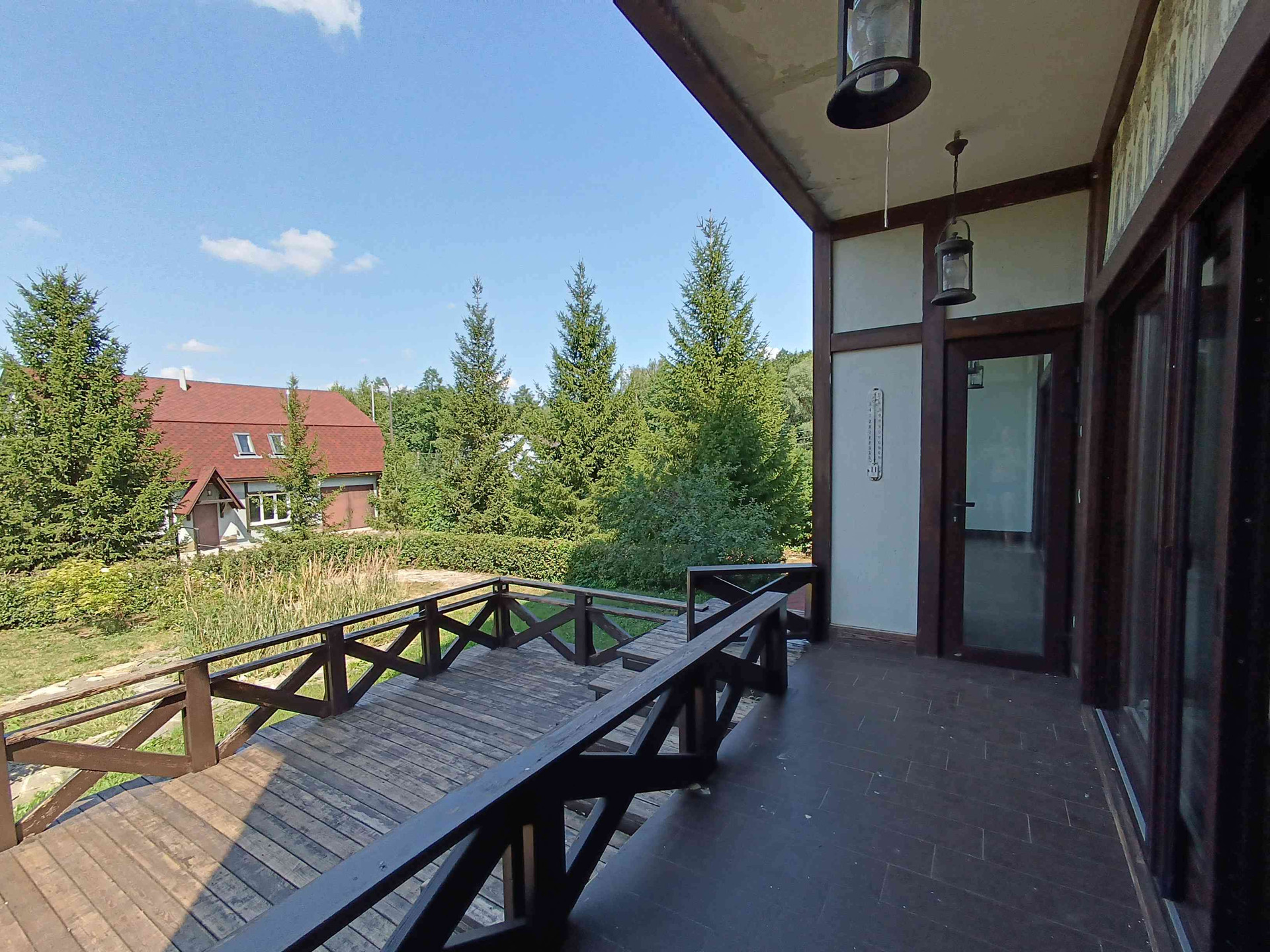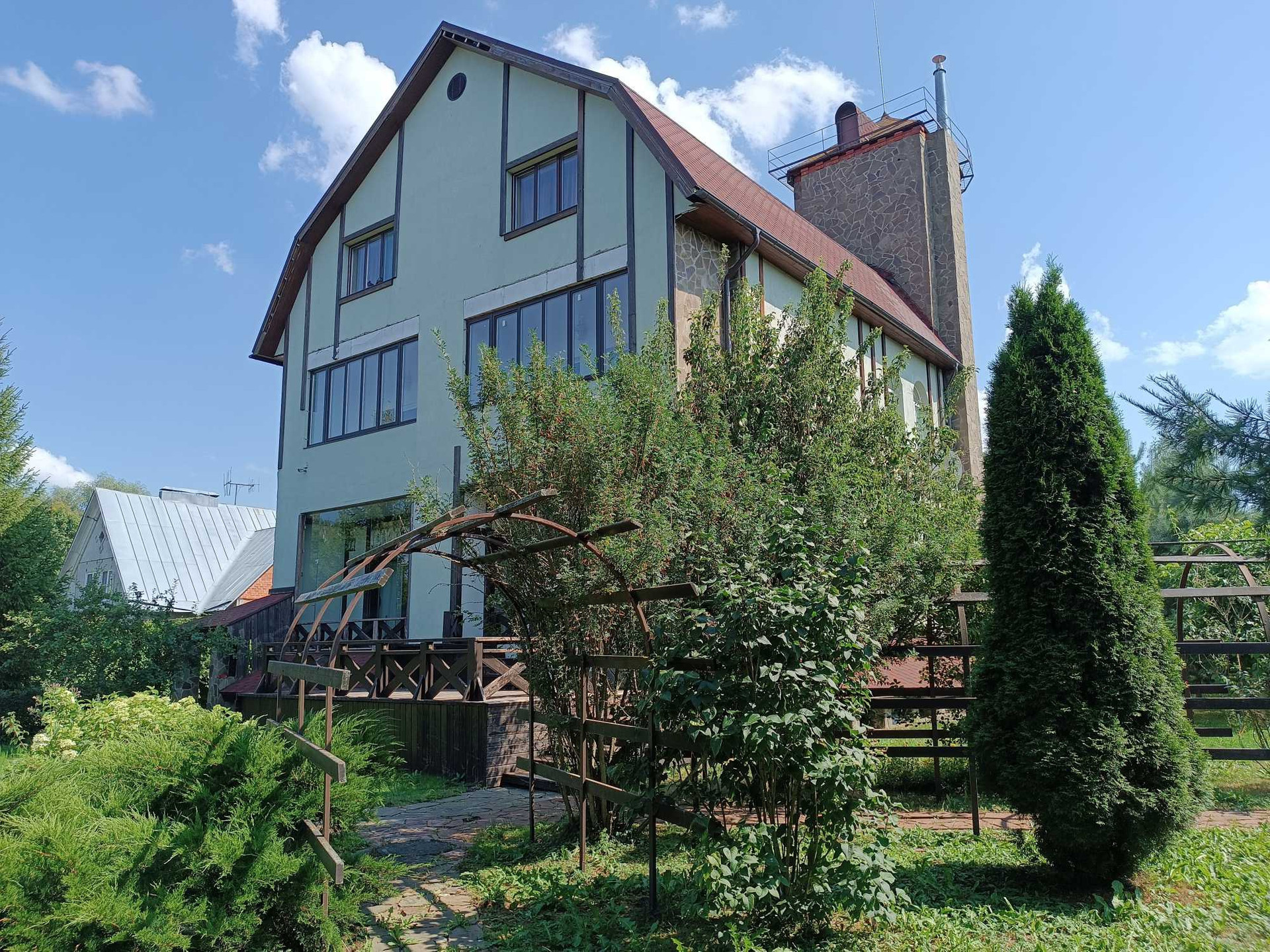- на втором: гостиная с санузлом, спальня с санузлом и выходом на лоджию, вторая спальня с выходом на лоджию, зимний сад, терраса.