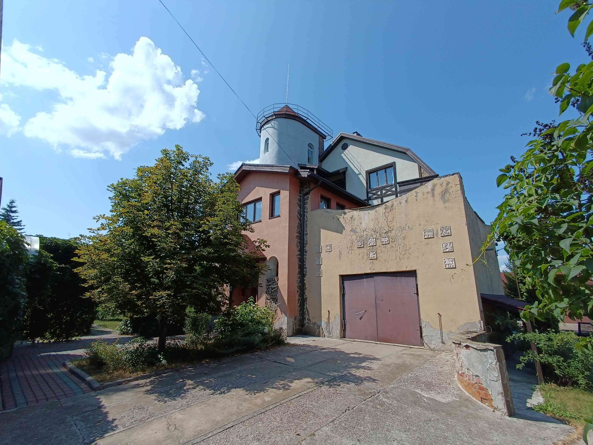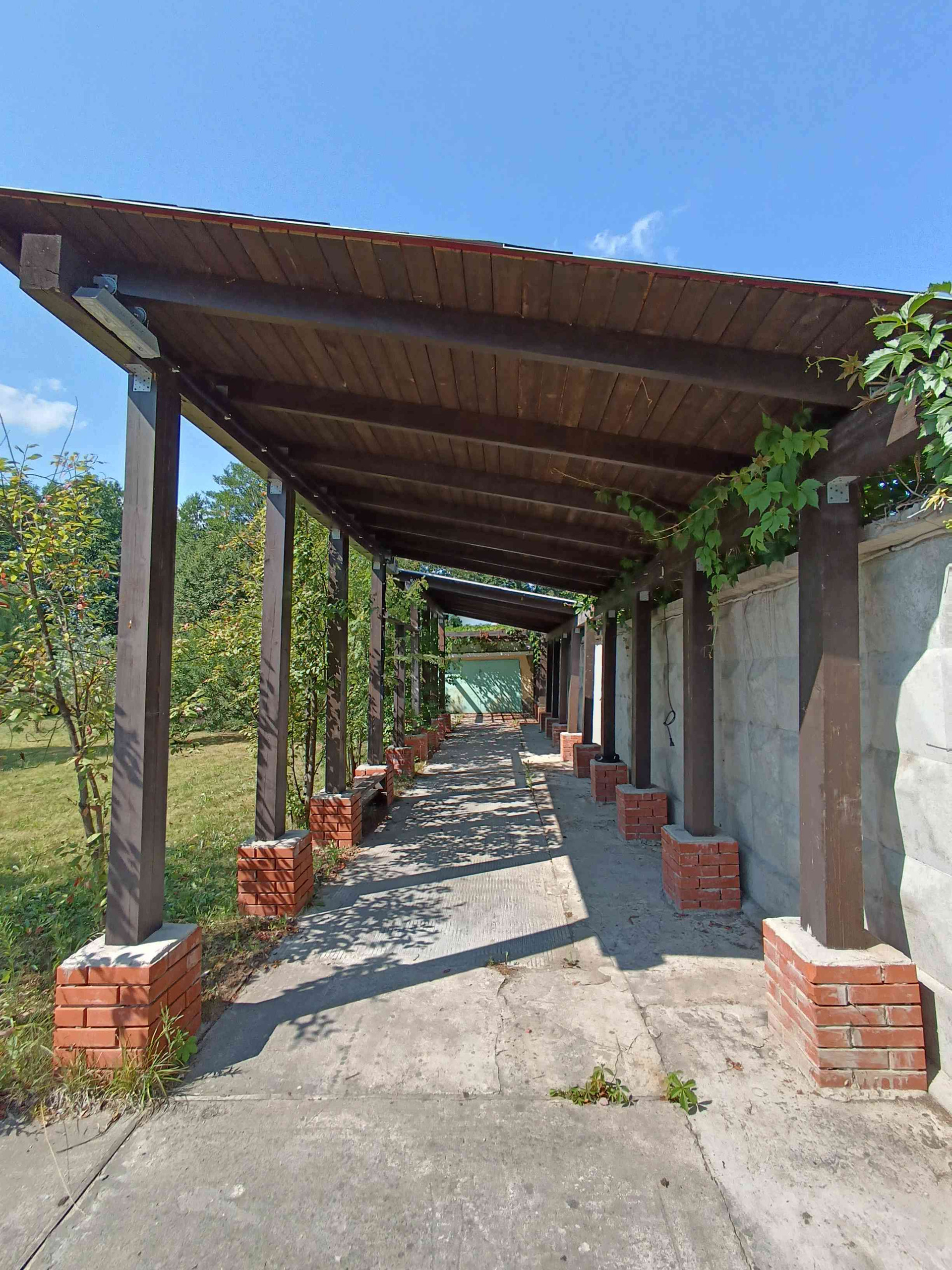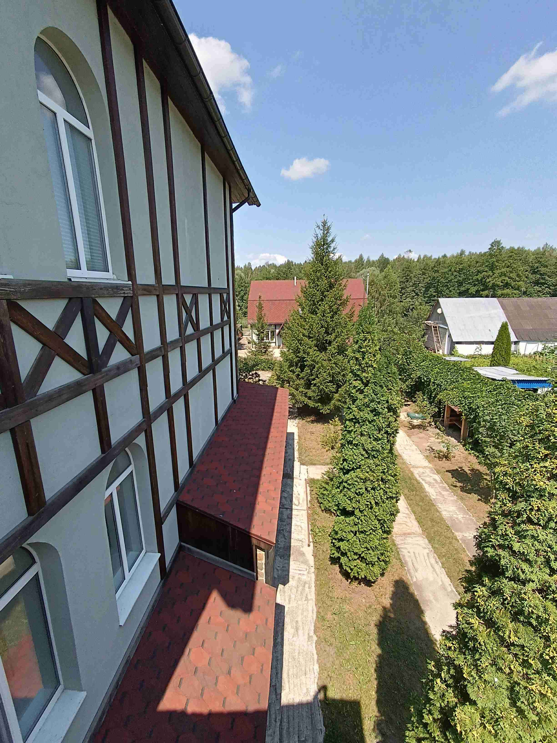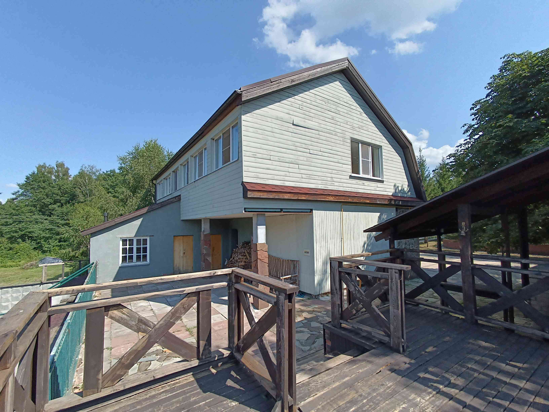 - на втором уровне расположены: теннисный корт, баскетбольная площадка, пруд, бассейн, скважина и гараж с навесом ( выход к реке Черепеть)