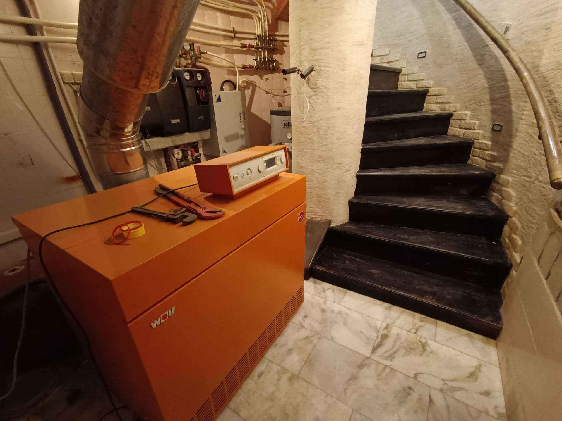 коммуникации: газ магистральный, вода центральная ( в основном доме установлен фильтр для очистки), доп. скважина ( работает на полив ), электроэнергия 25 кВт 3 фазы, канализация- переливной септик.