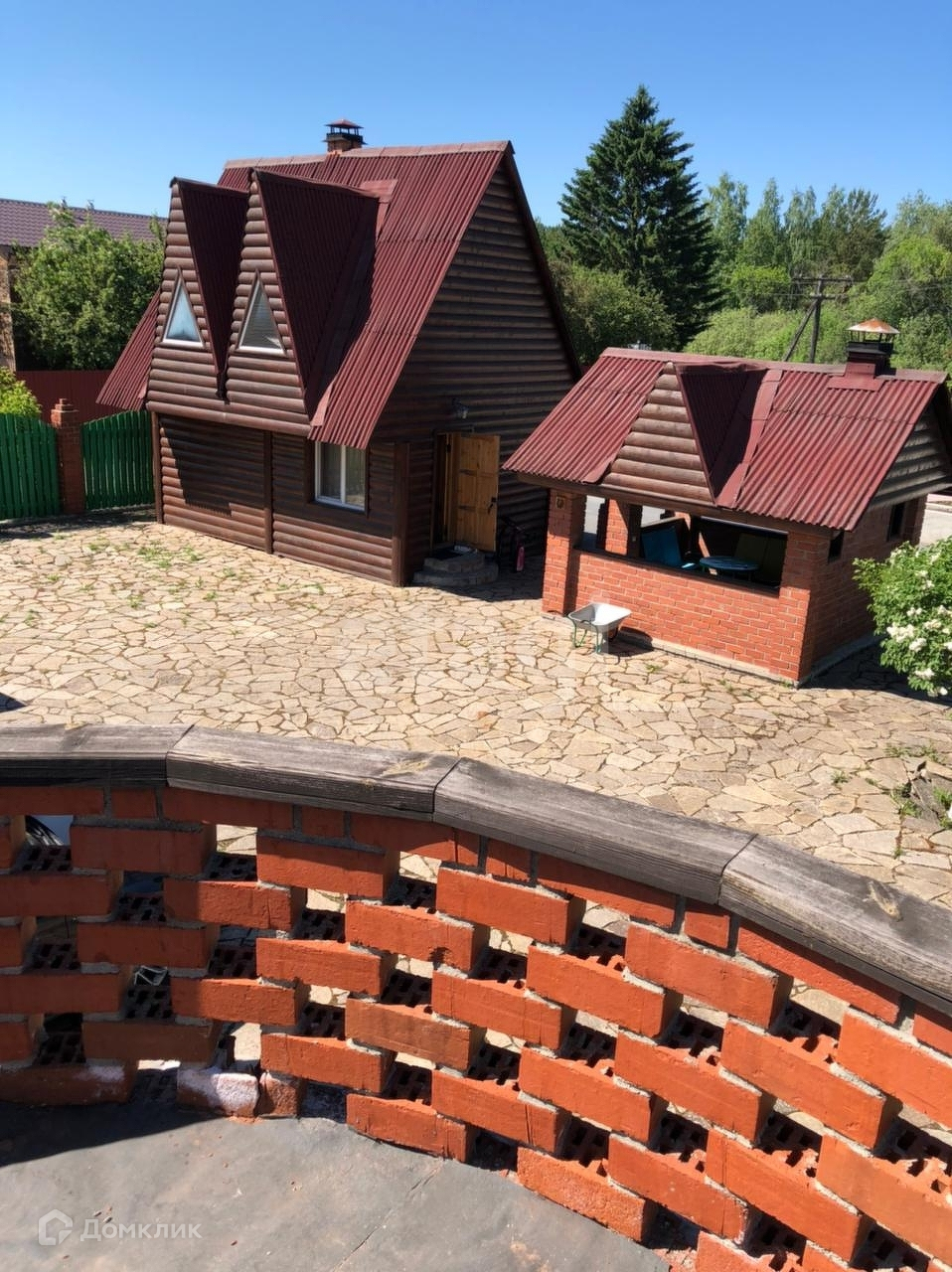 Двор выложен плиткой.