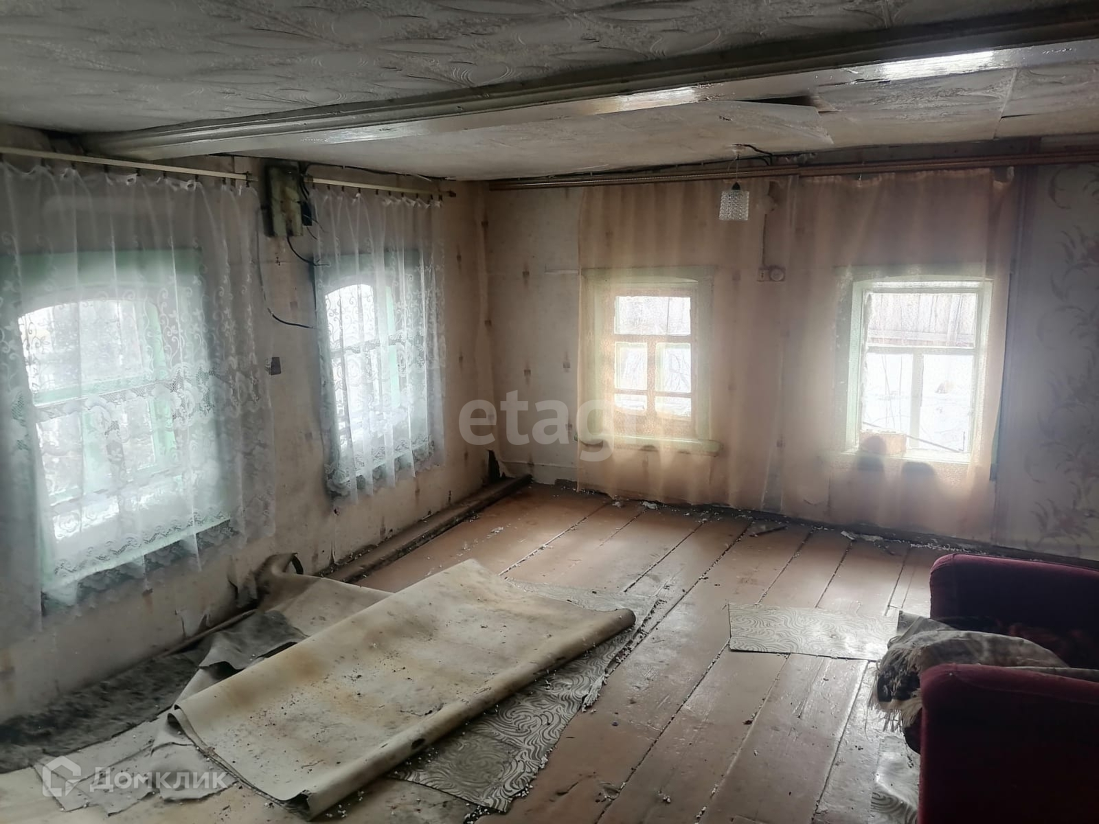 Деревянный, полы дощатые , деревянные окна.