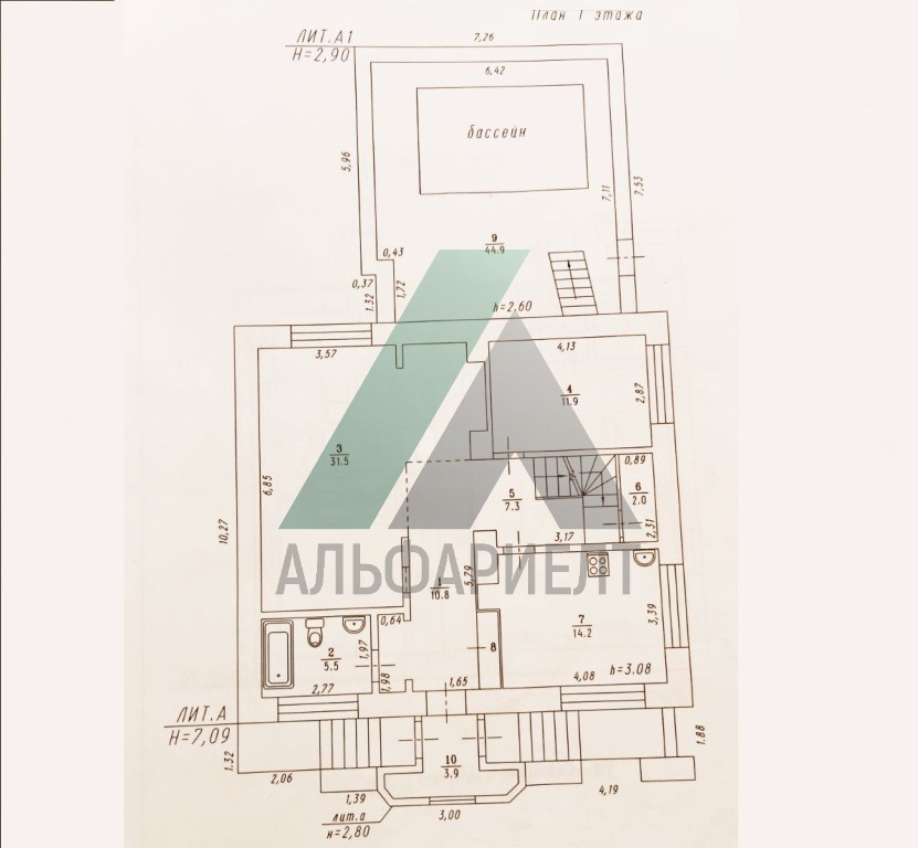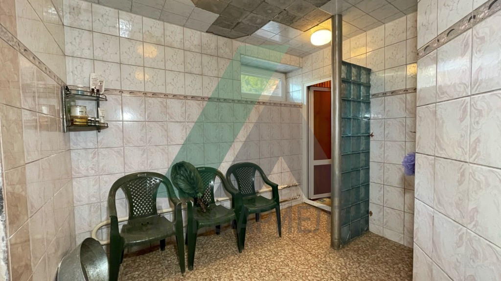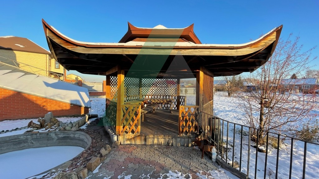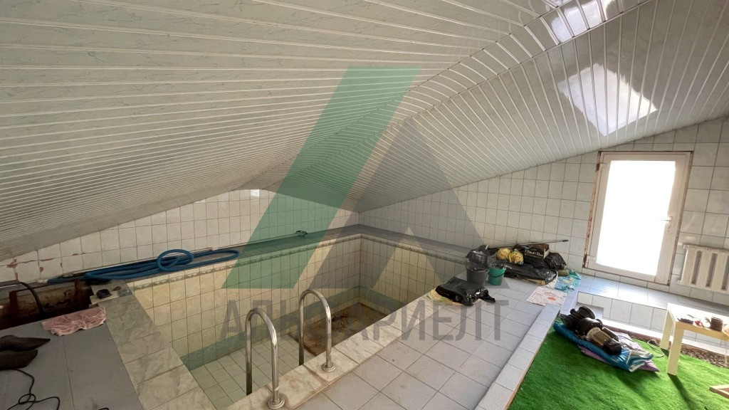 Четыре уровня – два жилых этажа, цоколь и мансарда, предназначенная под зимний сад. В цоколе расположены: бильярдная, баня с комнатой отдыха и санузлом. На первом этаже помимо 2 комнат, кухни и санузла расположен бассейн с подогревом, подсветкой, циркуляцией и фильтрацией воды. На втором этаже расположены еще один санузел и четыре комнаты.