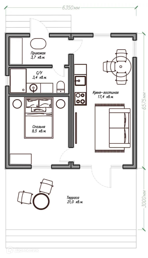 Общая площадь 42 м2