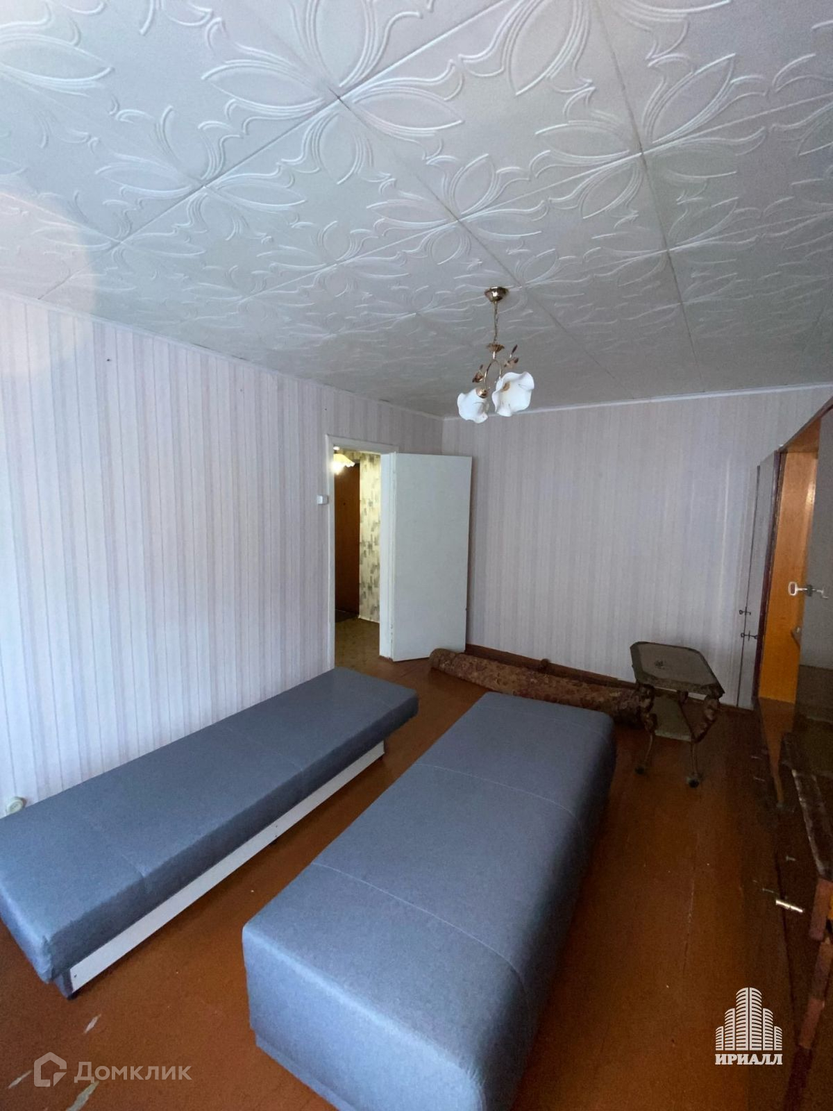 В комнате полы деревянные, на кухне и в коридоре линолеум.