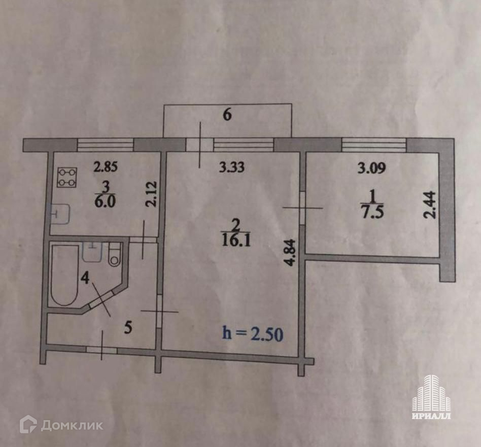 Балкон, лоджия 1 балкон