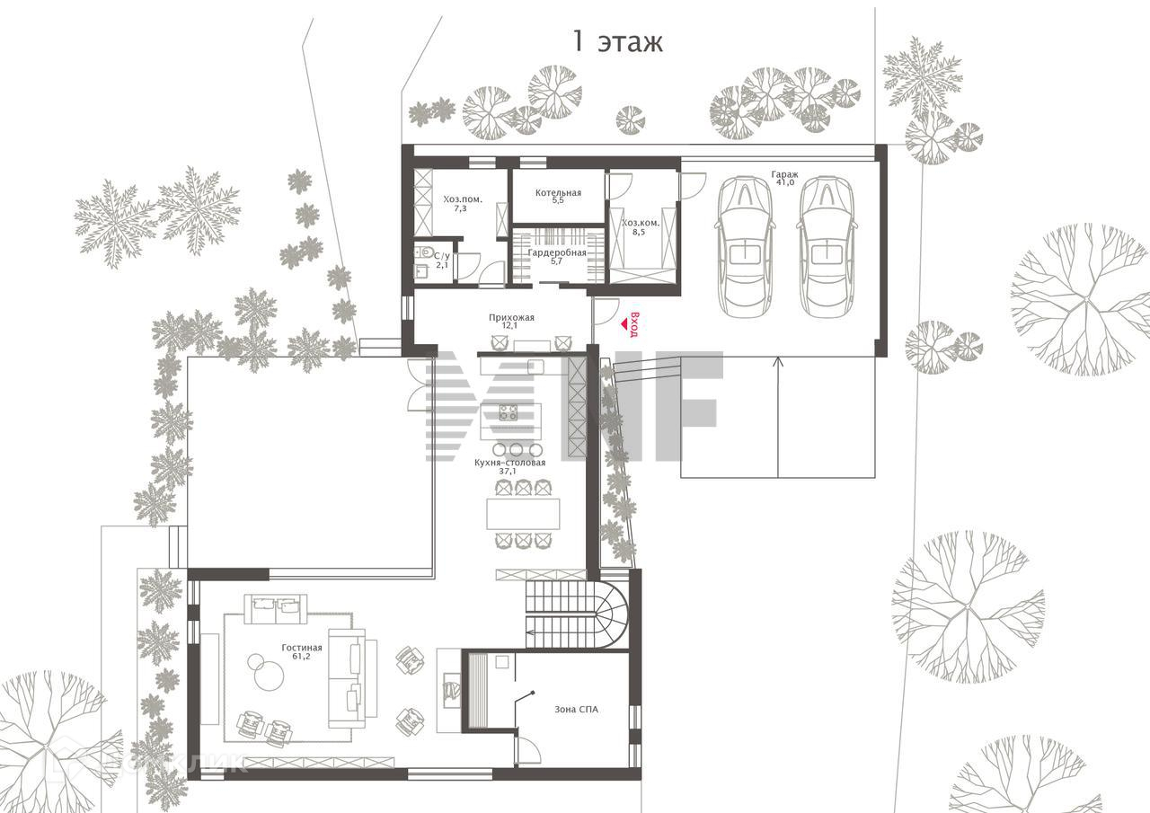 Планировочное решение включает в себя 3 автономных блока: семейный - с просторной кухней-гостиной, камином и Спа зоной для отдыха; lounge – уютные спальни; технический - паркинг и хозблок.