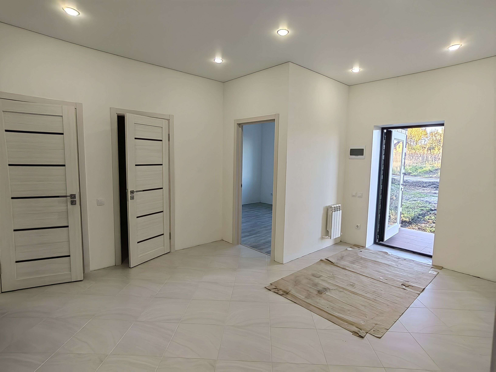 Планировка; три изолированные комнаты, кухня-гостиная, прихожая, просторный хол , два санузла, котельная, гараж.