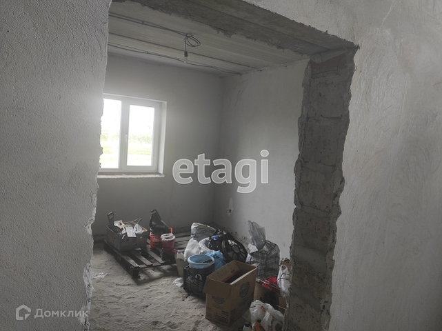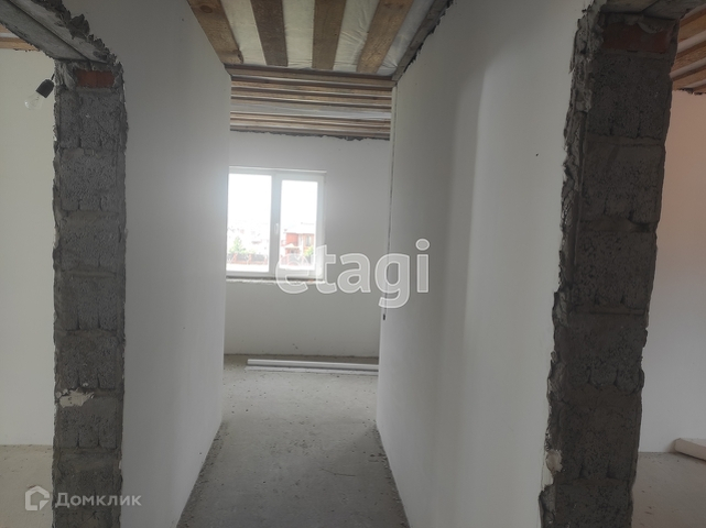 Дом построен из керамзито-блоков, утеплен и оштукатурен. Фундамент 1,2м. Внутренние перегородки из блоков. Лестницы на второй этаж в данный момент еще нет.Крыша покрыта металлом. Внутри черновая отделка. Из коммуникацией - вода и свет заведены в дом. Все коммуникации центральные.
