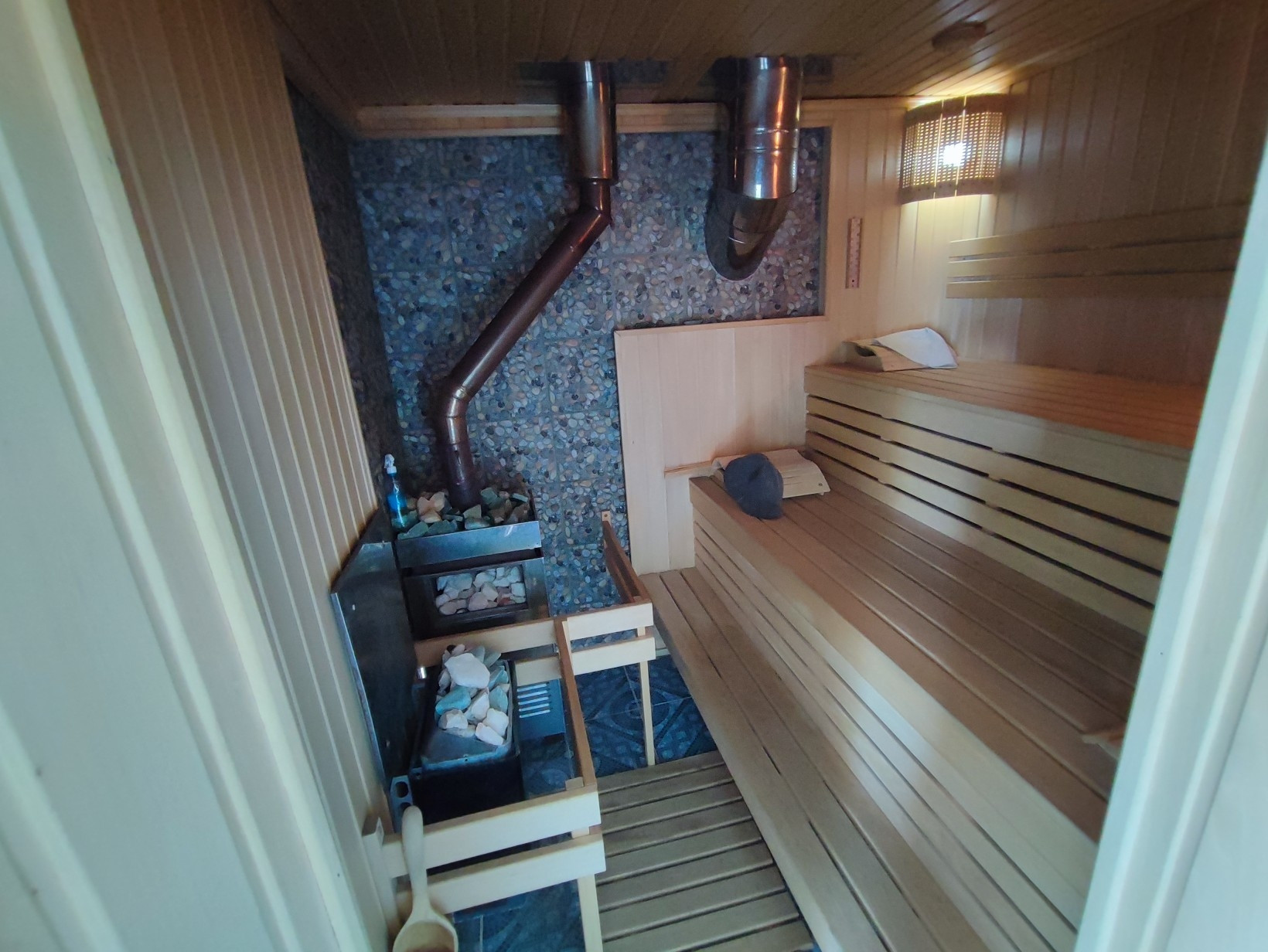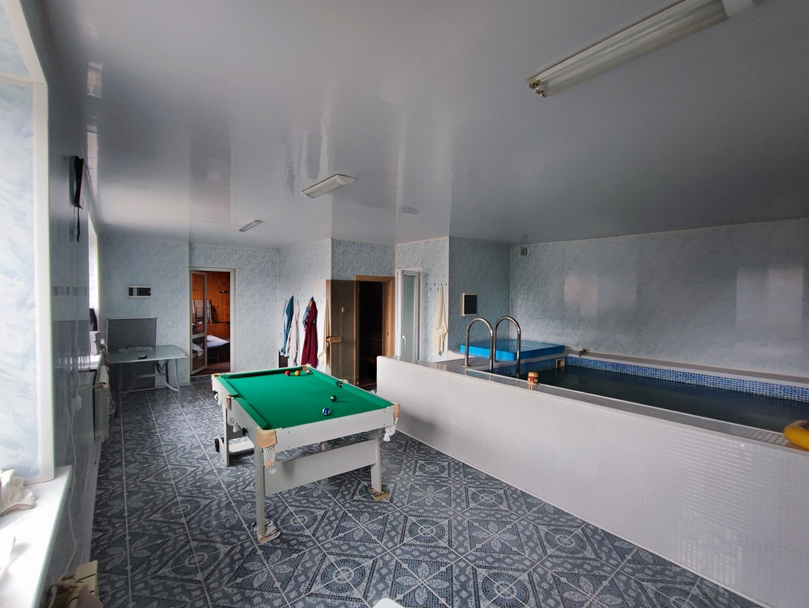 В доме отдыха бассейн с подогревом 10 кубов. Сауна с двумя печками, на дровах и электрический, на электрический можно лить воду.
