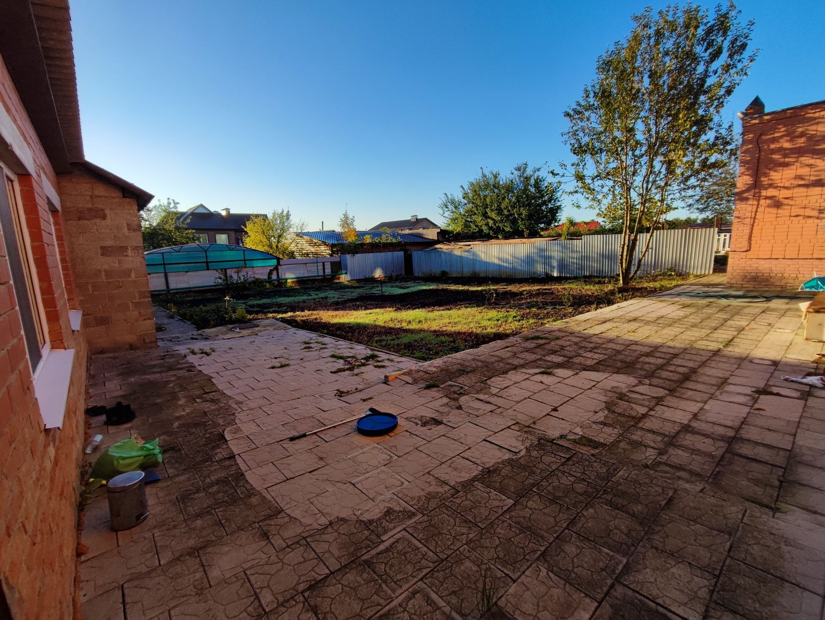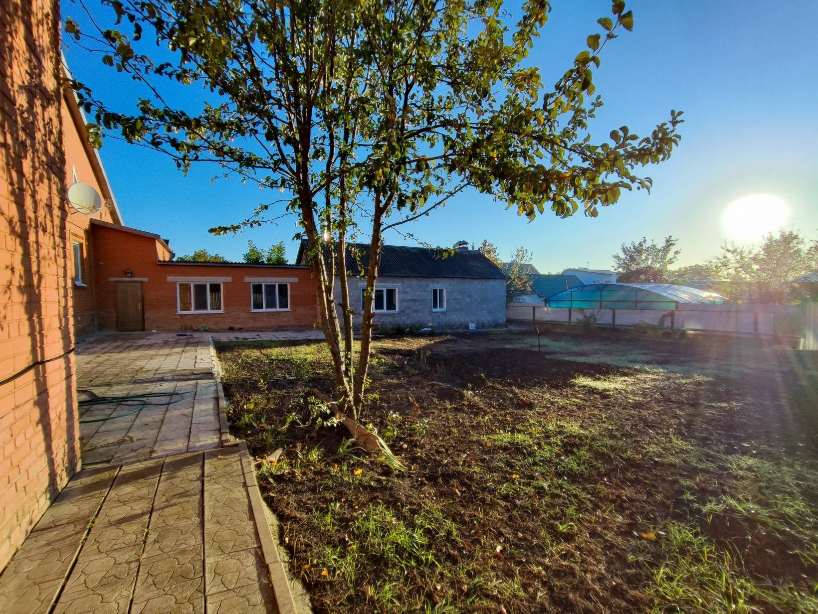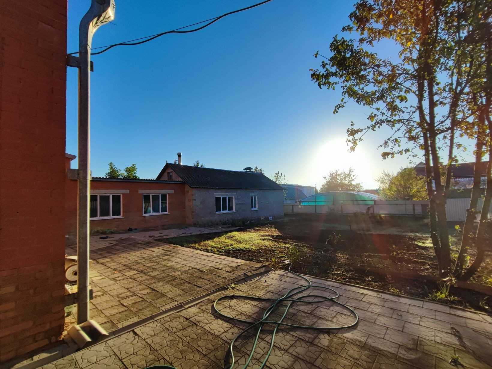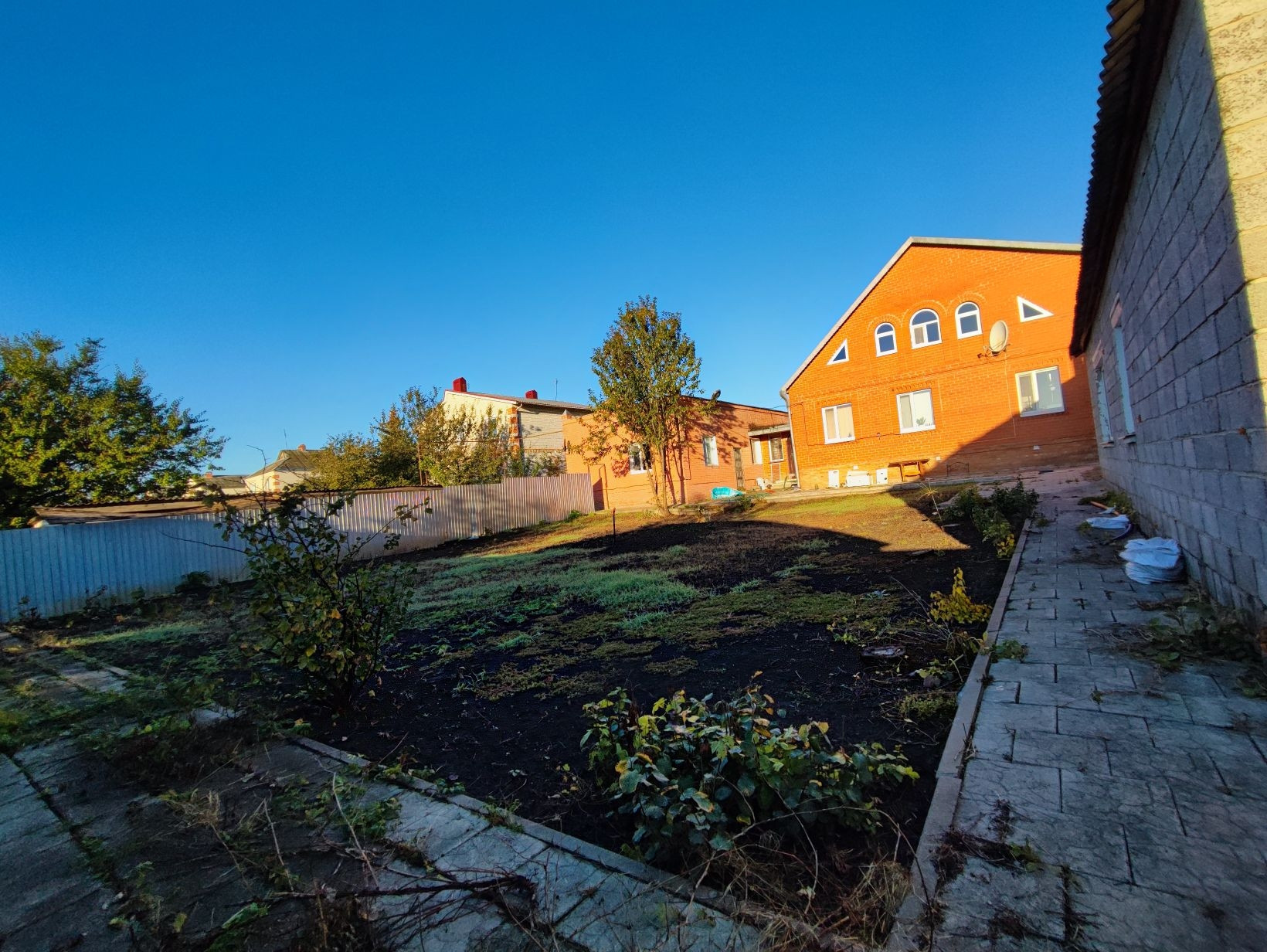 На участке есть сарай с 4 комнатами, можно выращивать кур например. Автополив для газона есть, но не подключен. Мотор есть, ёмкости для воды есть. Яблони, груши. Виноград в этом году обрезал под корень. Участок разделён на несколько зон, удобно для чистой зоны, огорода того же, ведения животного хозяйства, спортивной зоны и т.д. Есть ещё одно строение для хранения дворового инвентаря. Беседка.
