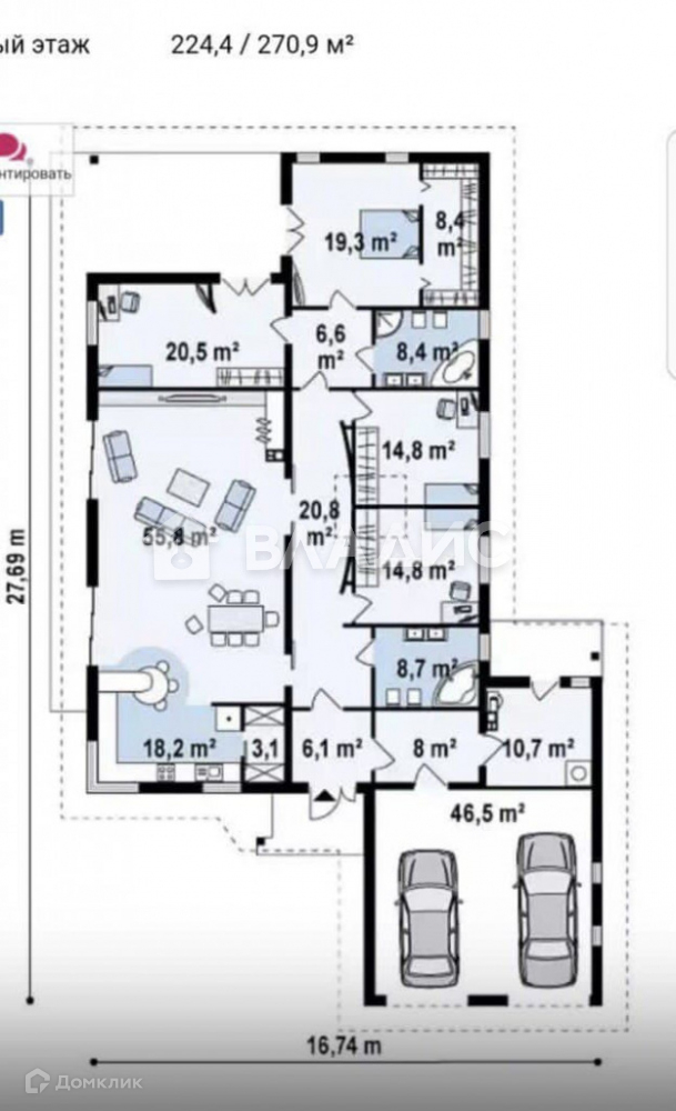 Общая площадь 264.6 м2
