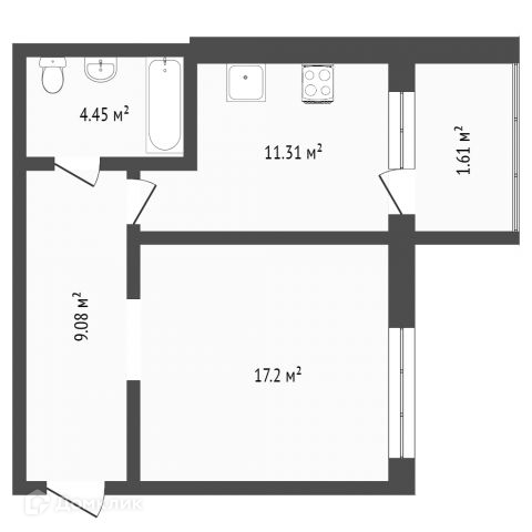 Общая площадь 35.6 м2