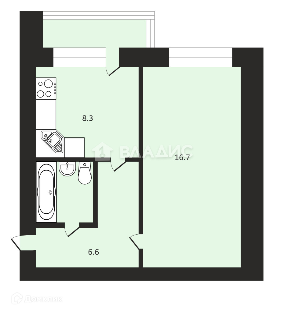 Жилая площадь 16.7 м2