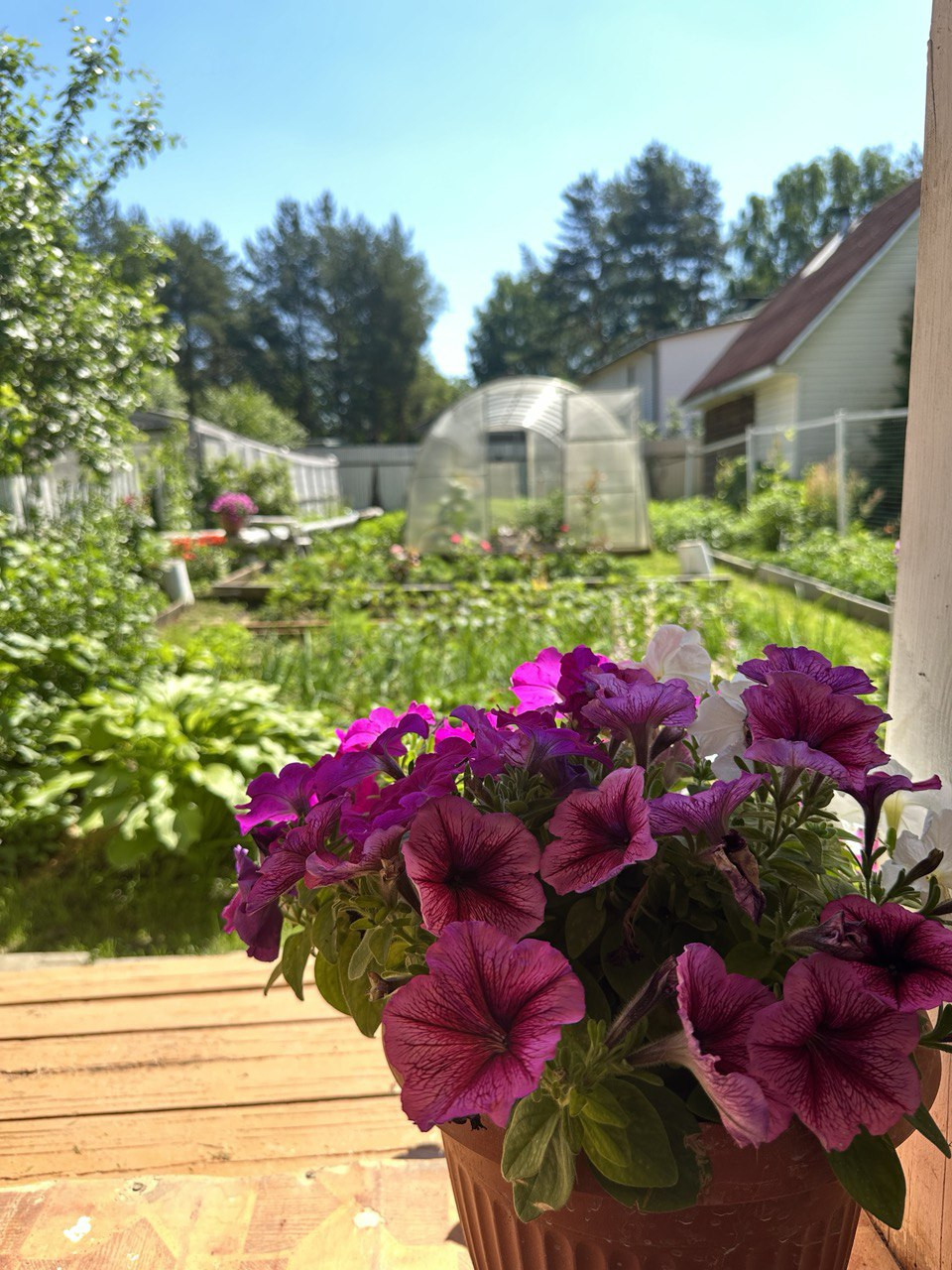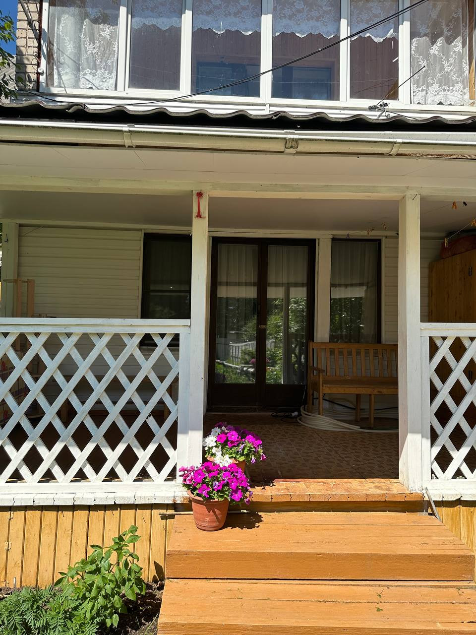 Из зала выход на террасу в свой огород, сад(посадки, кусты, парник, теплица)