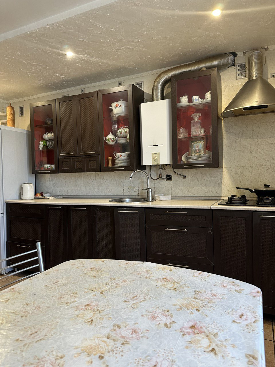 Коммуникации центральные, горячая вода - газовая колонка.