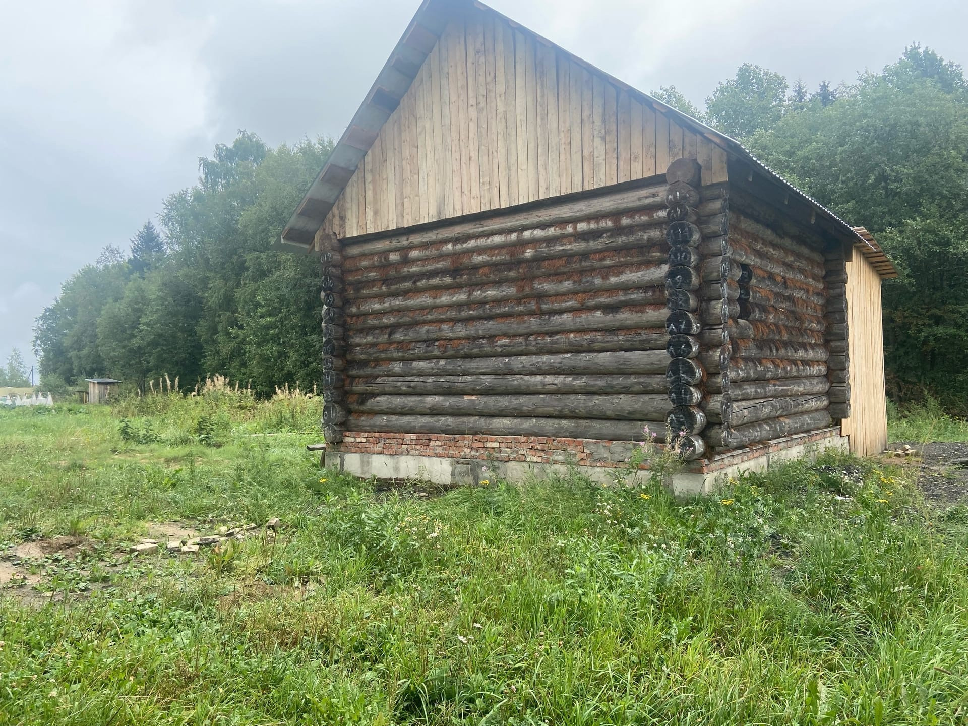 На земельном участке расположен сруб под крышей на ленточном фундаменте. Сруб с пристройкой.