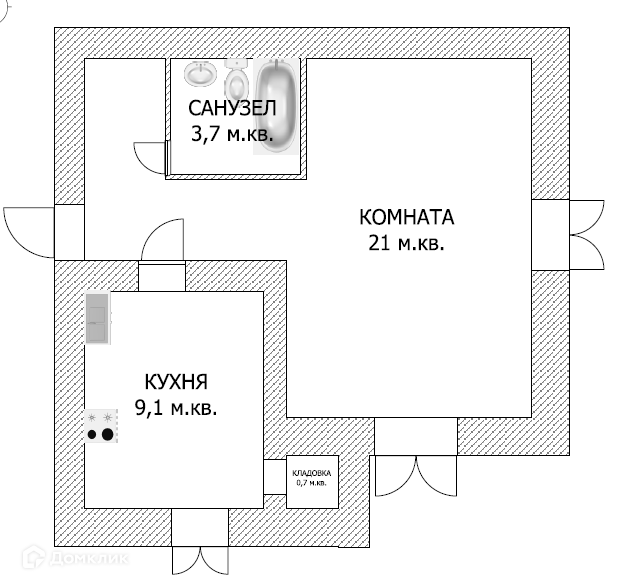 Общая площадь 41 м2