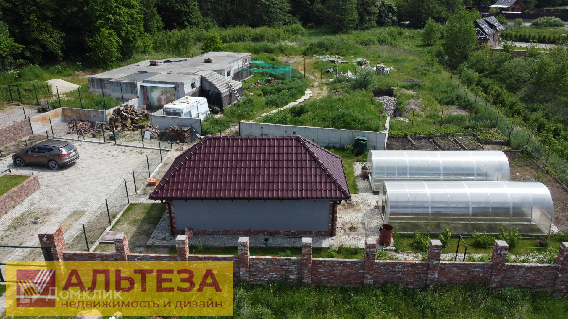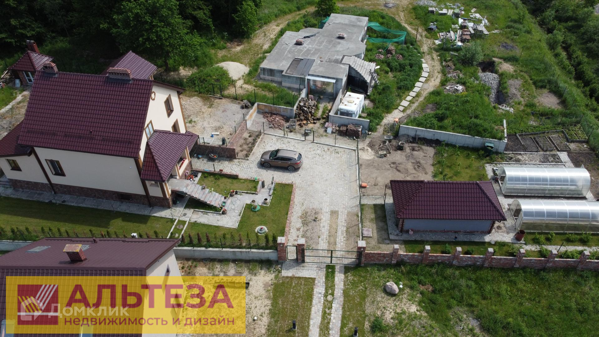 4 спальни, 3 санузла, летняя терраса, мангальная зона, зона бассейна, мастерская, гараж.