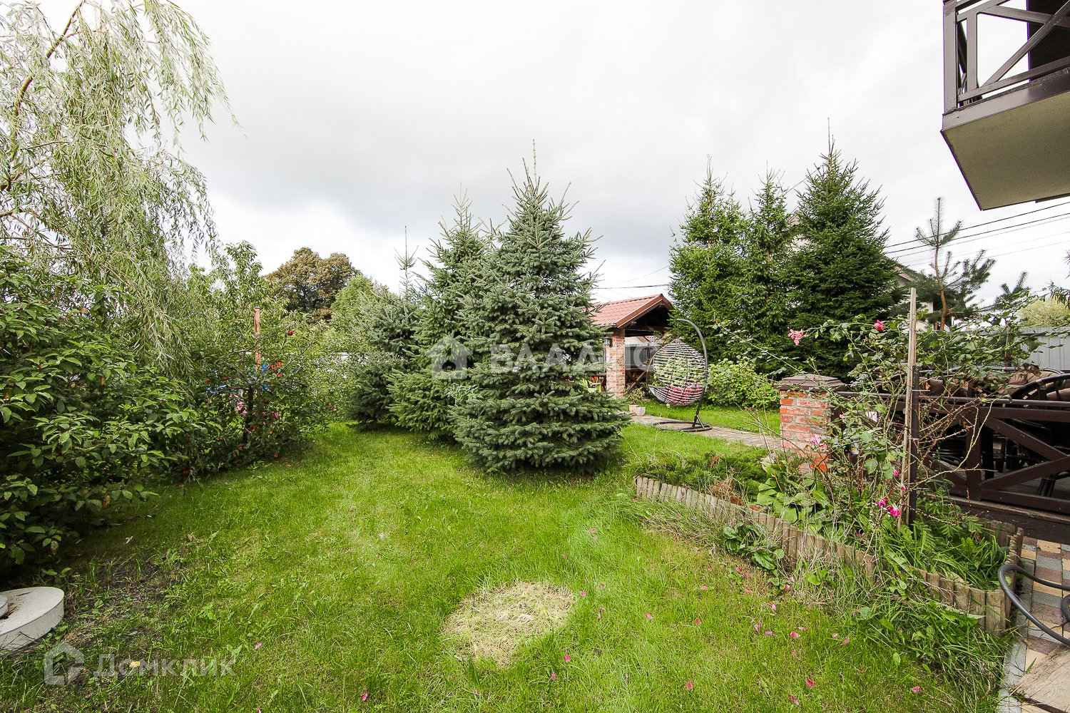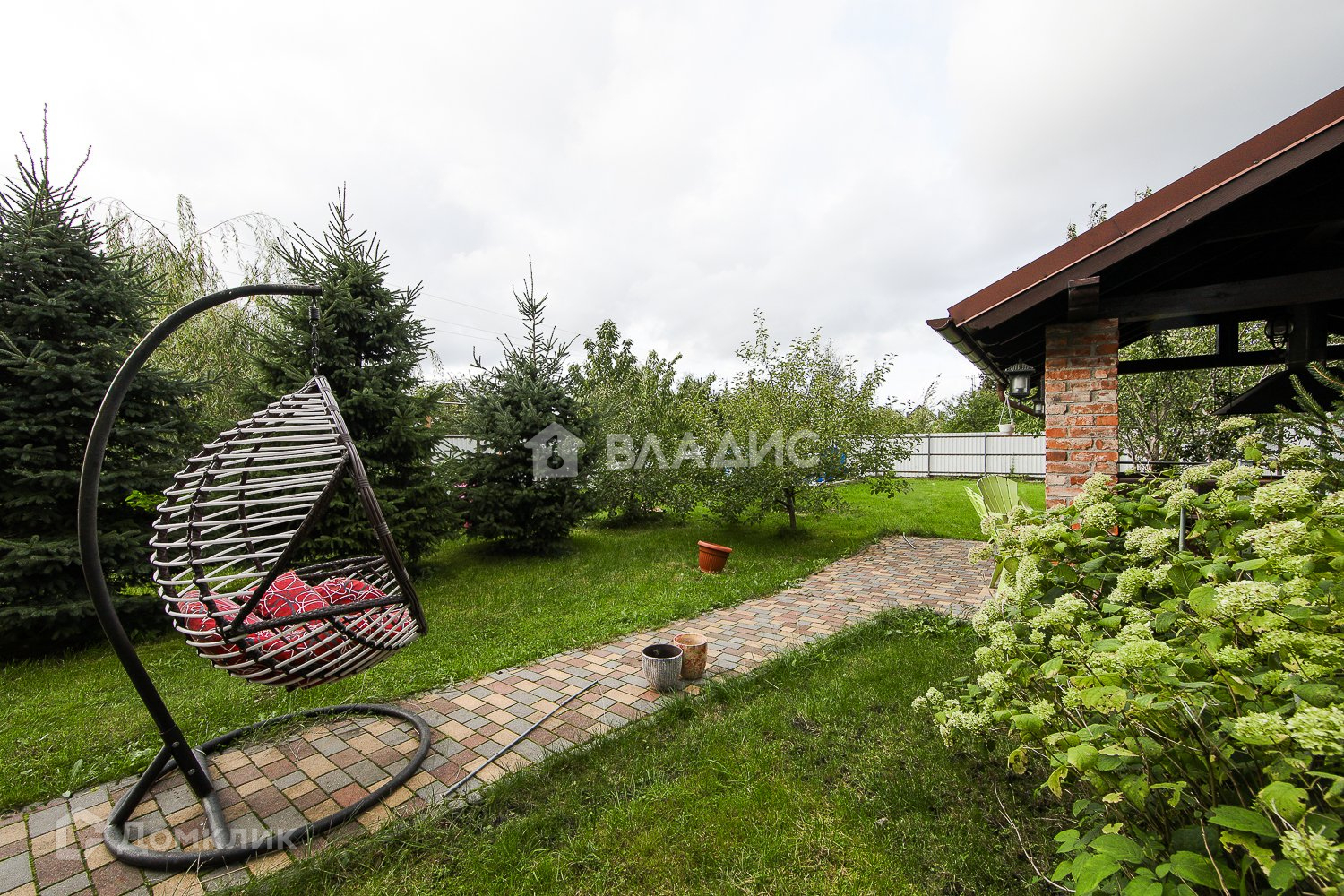 Территория -  7,8 соток земли. Двор благоустроен дорожками. Участок ухожен. В саду плодовые деревья, кустарники, хвойные насаждения.