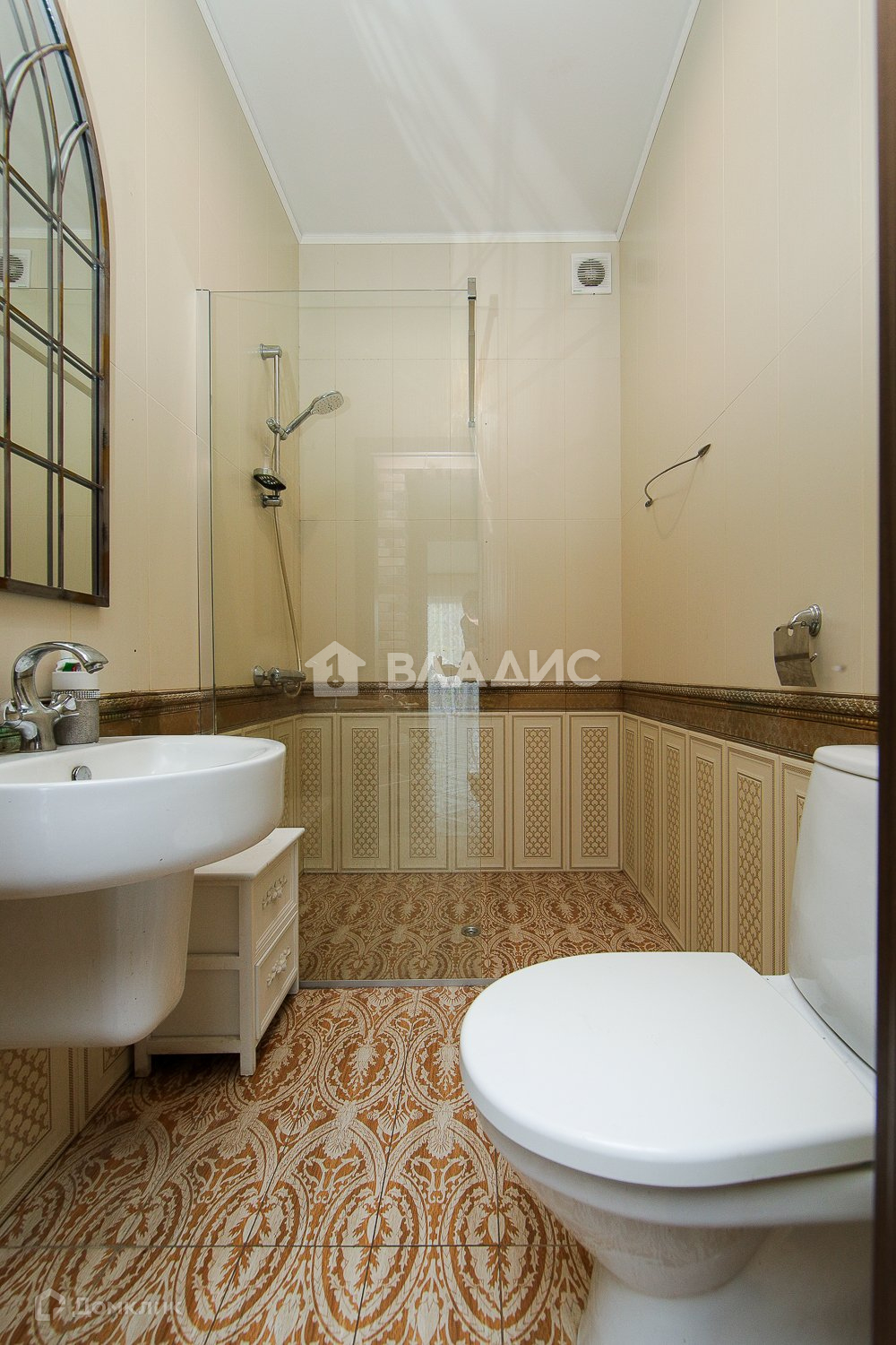 Два санузла узла, в одном из которых установлена стеклянная душевая кабина в пол, подогрев полов, дорогая сантехника.