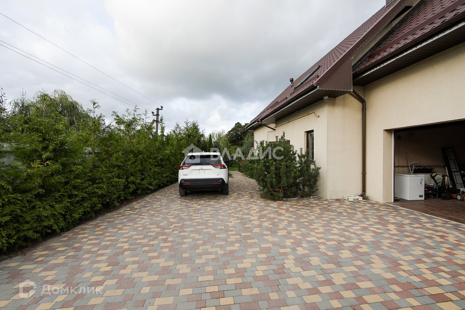 Имеется отапливаемый гараж.   Вода из скважины 45 м., канализация- два септика по 3 кб м., электричество 12 квт.
