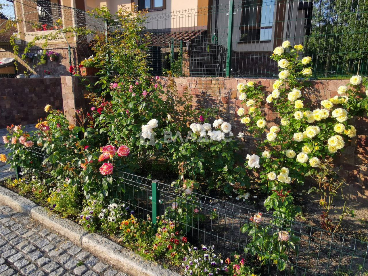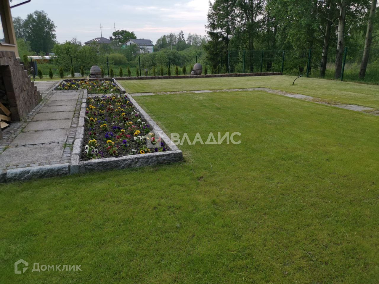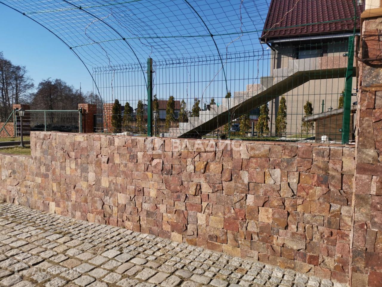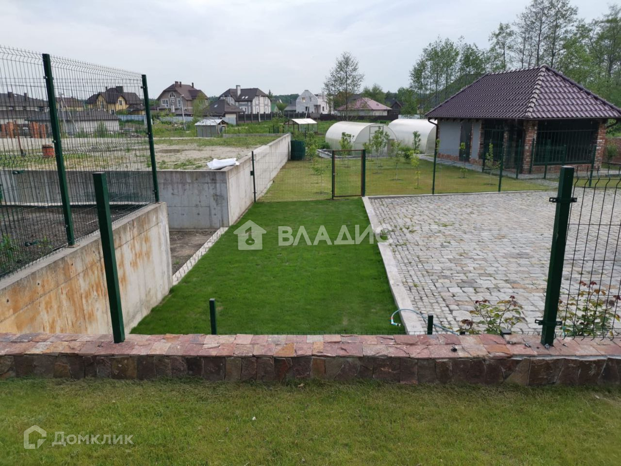 Площадь 18 соток, высокий, сухой, на холме (выше соседних участков на 1,5м с подпорной бетонной стенкой). Территория огорожена, установлены распашные ворота. Парковка перед домом на несколько автомобилей, замощена комбинированной брусчаткой с узорами и окантована гранитными бордюрами. На участке имеется капитальный домик под хозяйственный инвентарь, вольер, площадью 25 кв.м. Гриль-дом с барбекю и печкой.