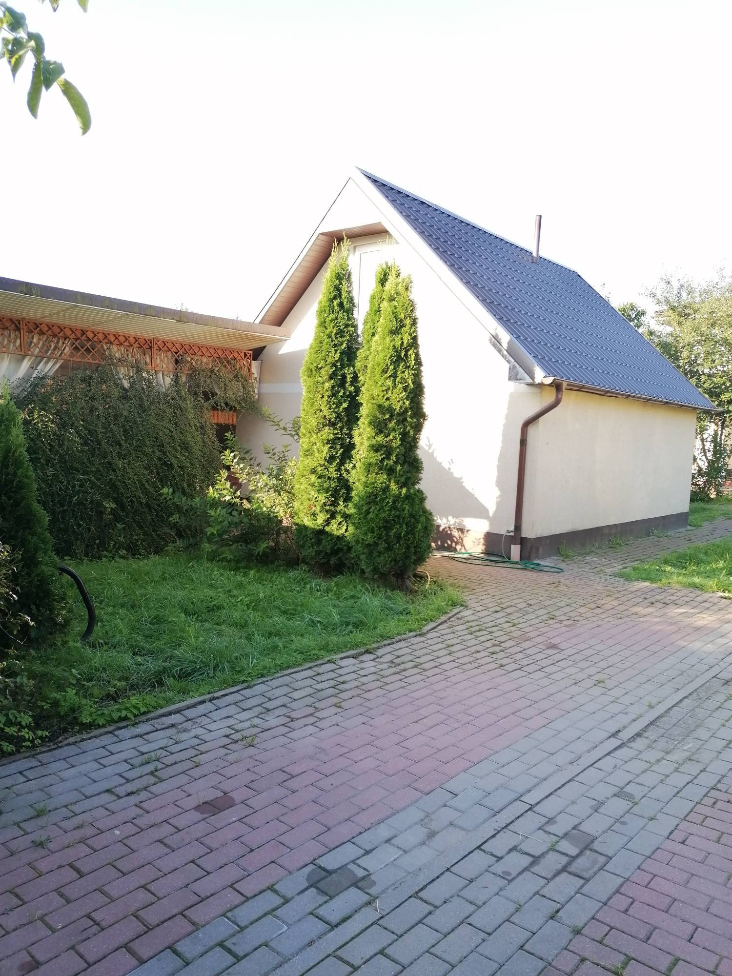 территория вымощенная тротуарной плиткой, с фруктовыми деревьями, зелёными насаждениями туи, ели, пихты, виноградники 2 сорта, а также на территории есть гараж с монсардой, доп. комната, русская баня на дровах с парной, моцкай и комната отдыха, беседка с зоной барбекю, прямая продажа, "риэлторам и просто интересующим" не беспокоить!