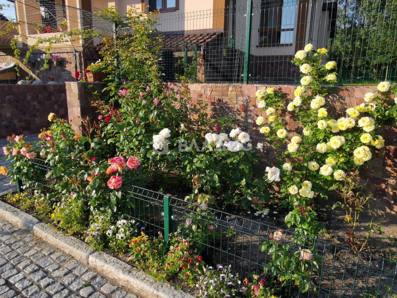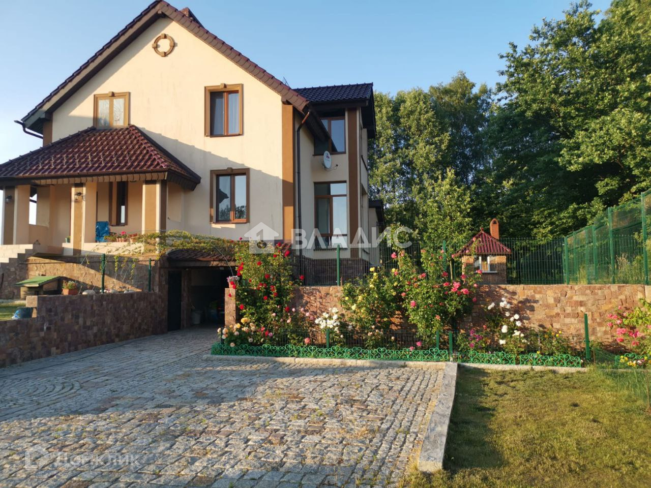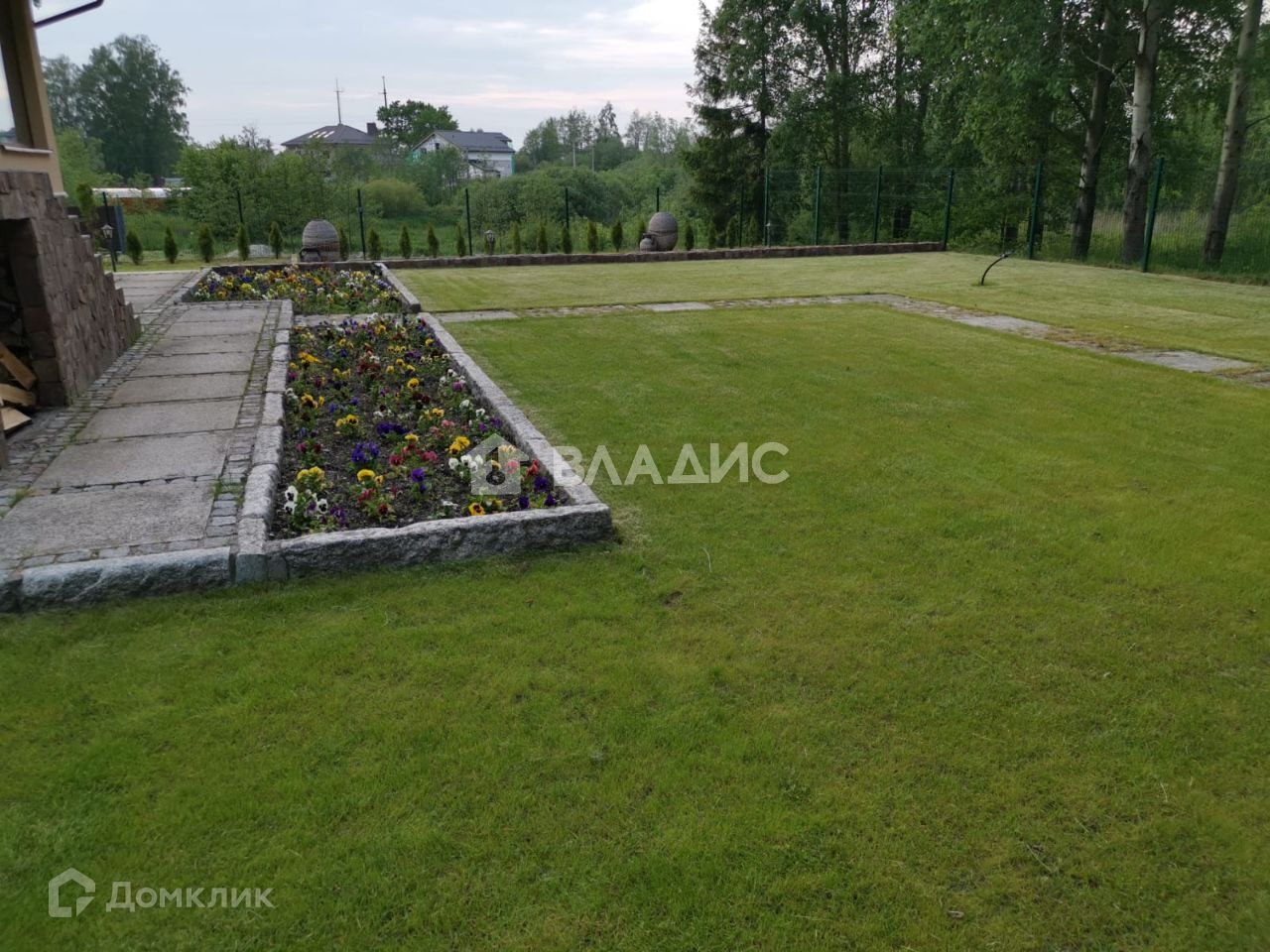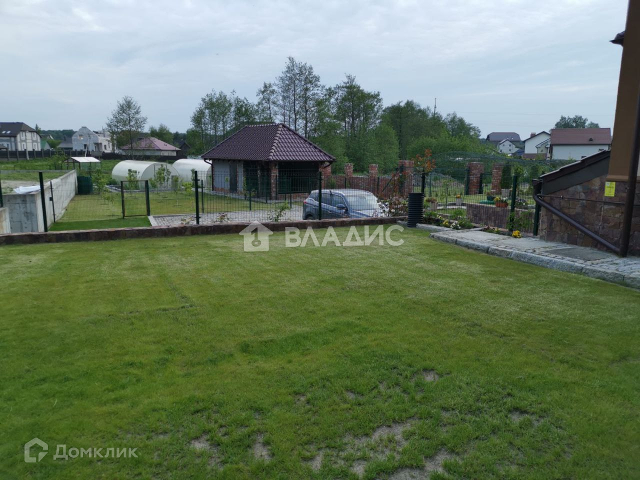 Площадь 18 соток, высокий, сухой, на холме (выше соседних участков на 1,5м с подпорной бетонной стенкой). Территория огорожена, установлены распашные ворота. Парковка перед домом на несколько автомобилей, замощена комбинированной брусчаткой с узорами и окантована гранитными бордюрами. На участке имеется капитальный домик под хозяйственный инвентарь, вольер, площадью 25 кв.м. Гриль-дом с барбекю и печкой.