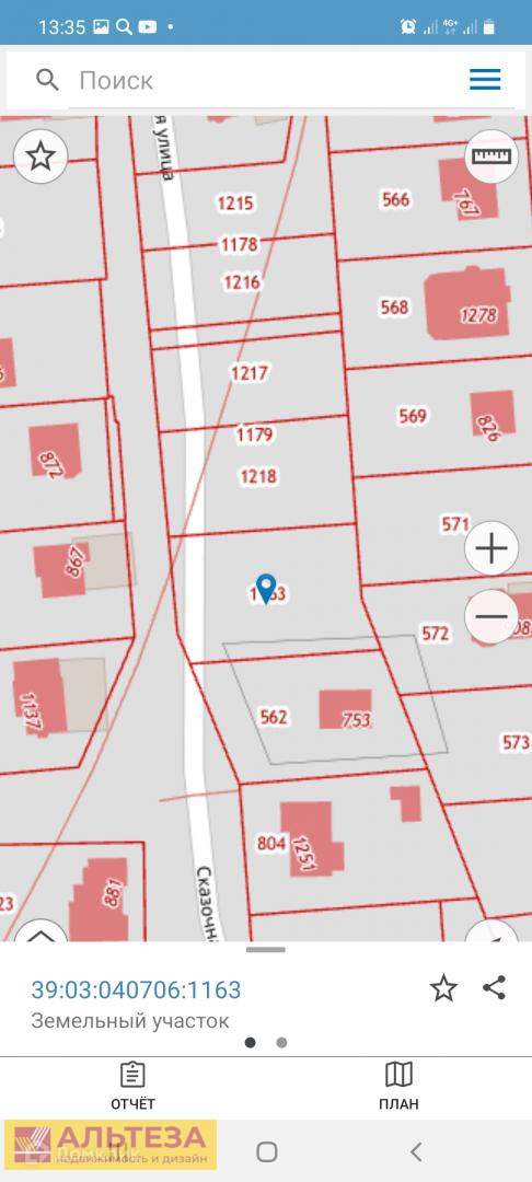 Продается земельный участок, расположенный в пос. Малиновка.   Участок ИЖС. Общая площадь- 10.52 сот. Участок в собственности. Кадастровый номер: 39:03:040706:1163.