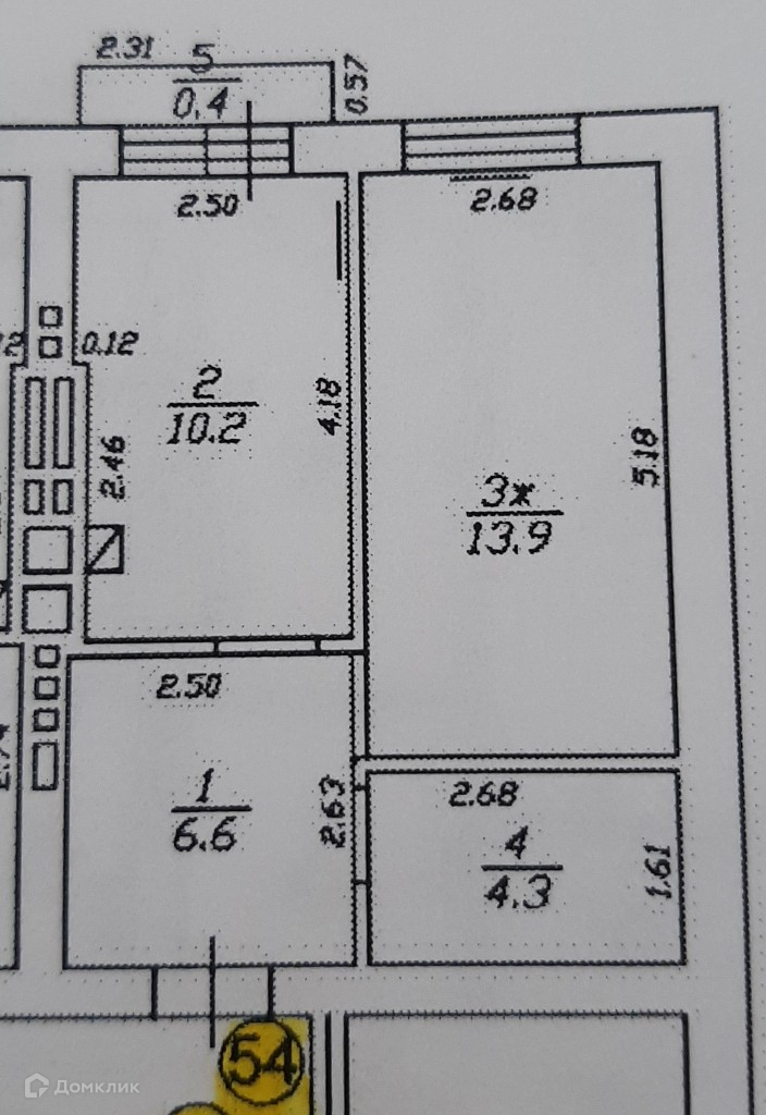 Квартира площадью 35*м², жилая комната 13,9м², кухня 10,2м²
