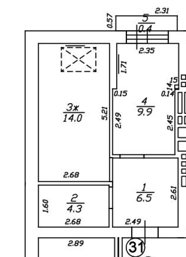 Общая площадь 34.7 м2