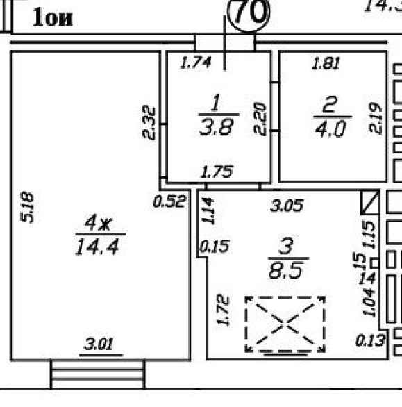Жилая площадь 14.4 м2