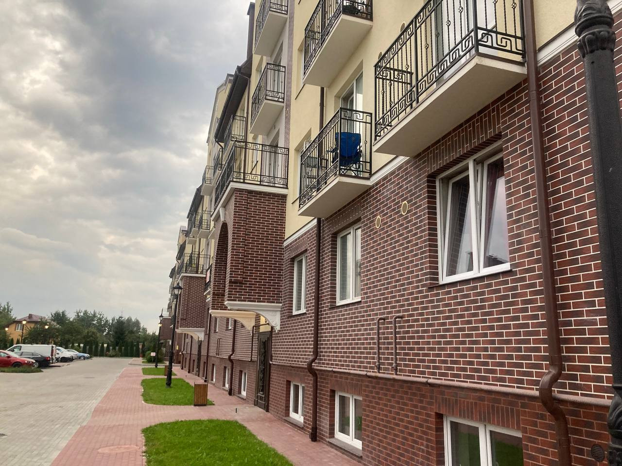 Во дворе детские и спортивные площадки, огромная парковка.