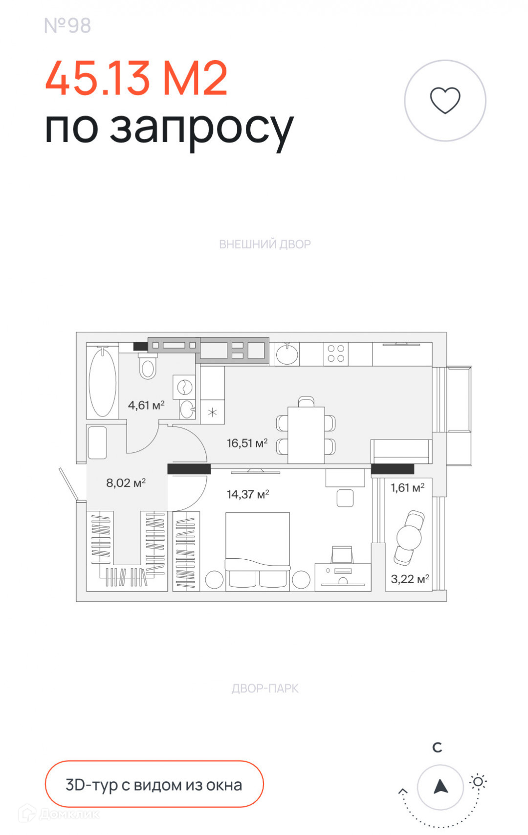 - Общая площадь 45,13 м2 .