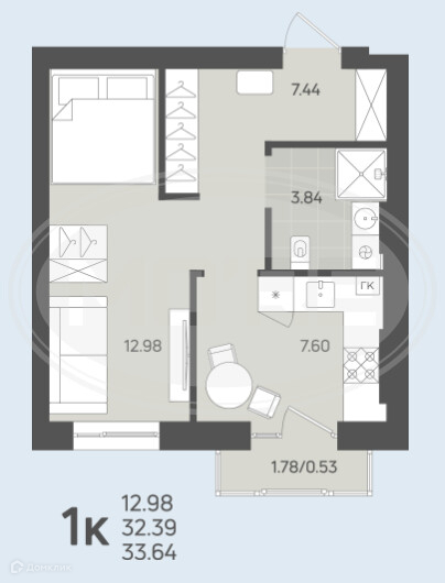Общая площадь 32.39 м2