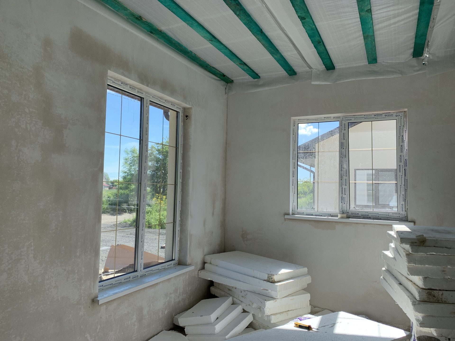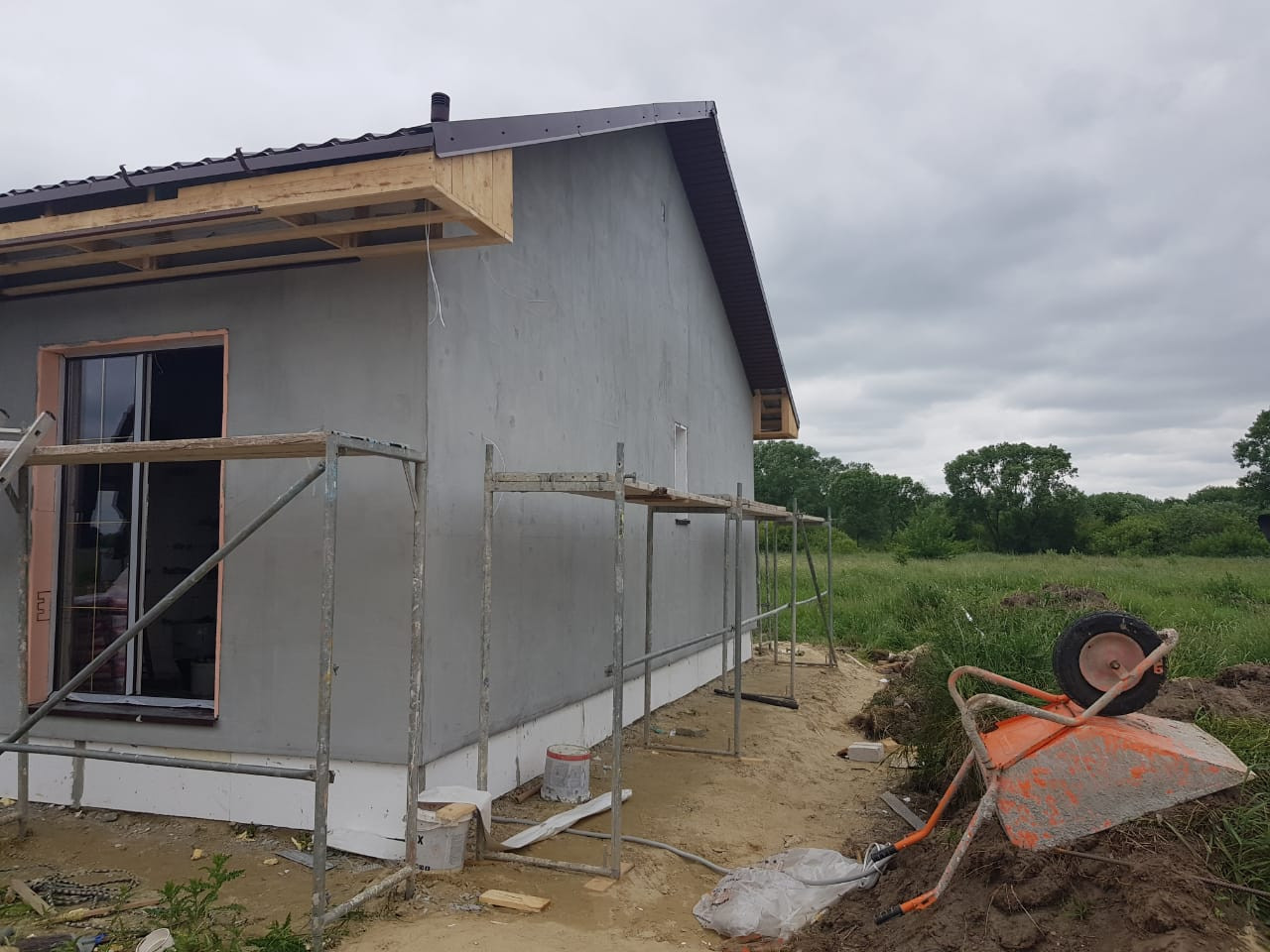 При строительстве использовались качественные материалы. Наружные и внутренние стены выстроены из газобетонного блока 250мм. Фасад утеплен пенополистиролом 100мм и оштукатурен.