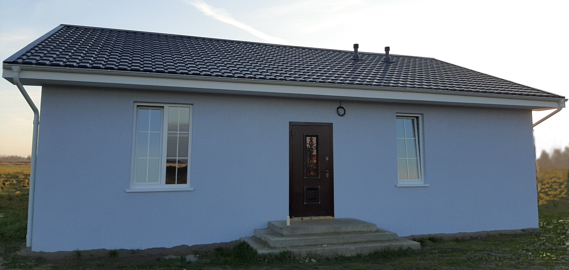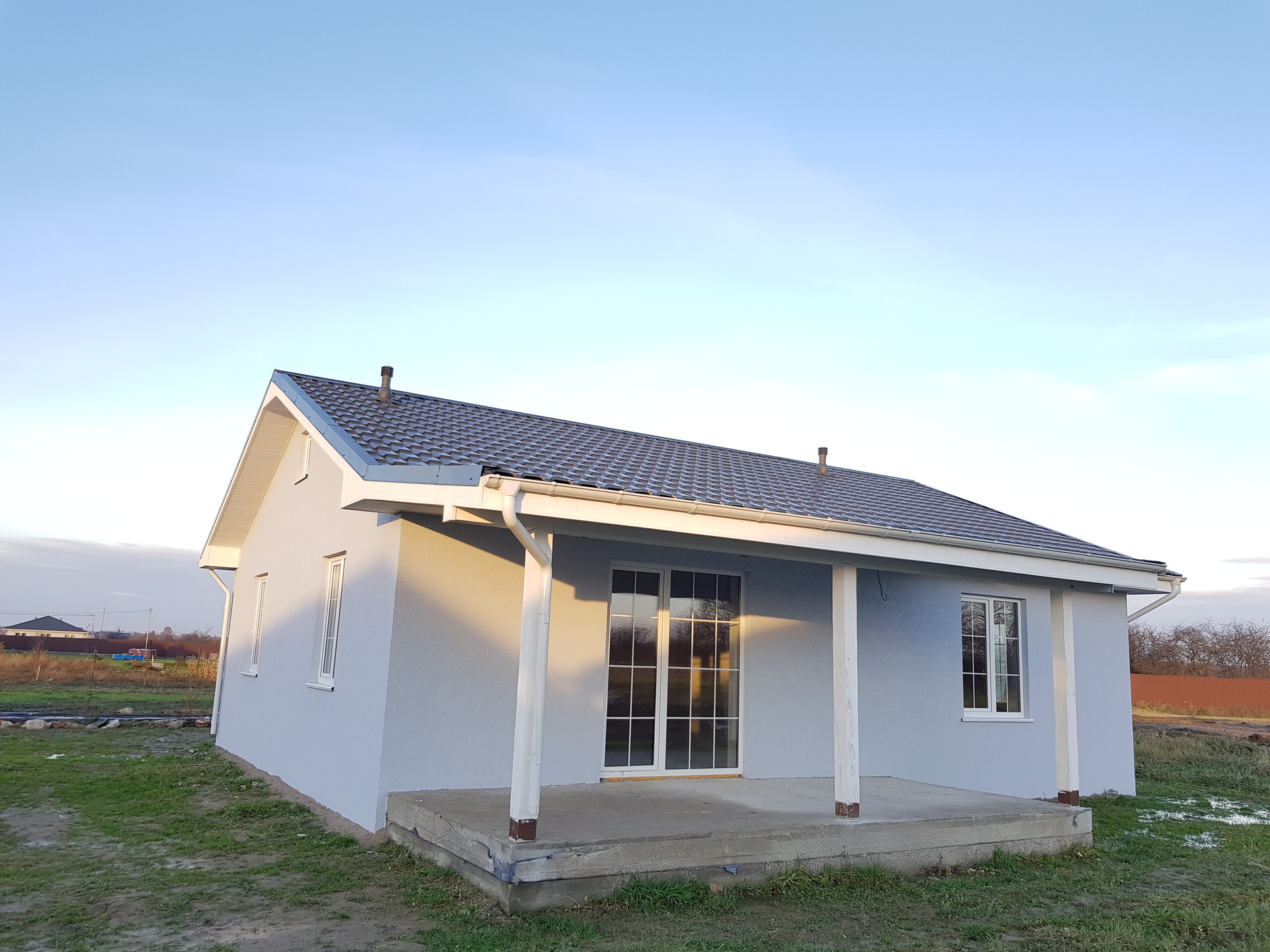 Дом построен из современных, качественных и экологичных материалов. Размер по фундаменту 10х10 м. Наружные стены выполнены из газосиликатного блока 300 мм и дополнительно утеплены пенополистиролом 80 мм.