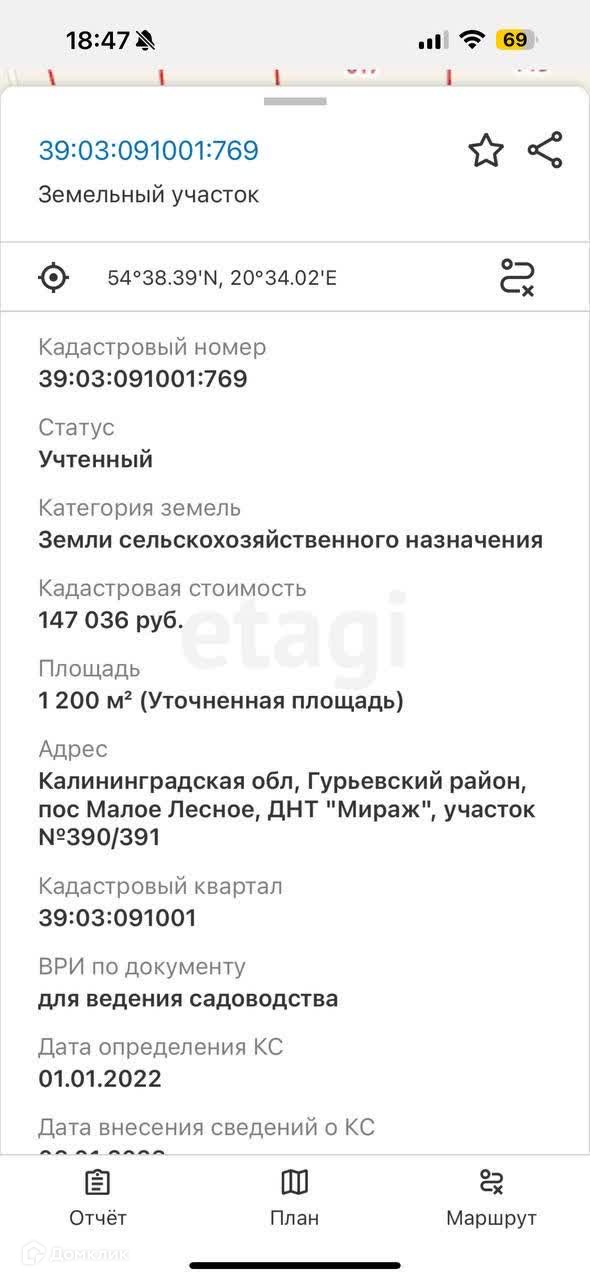 Номер в базе: 10913045. Район: п. Малое Лесное (ДНТ \"Мираж\")