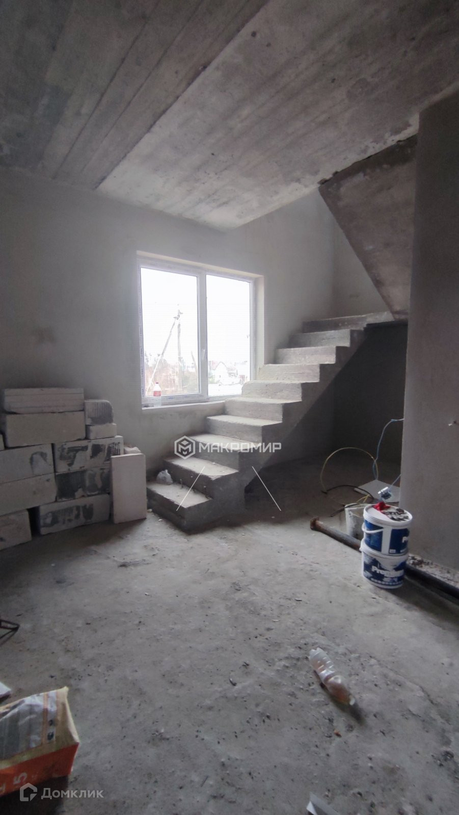 Дом построен из газосиликатных блоков , 2 этажа , высокий первый этаж - потолки 3м .