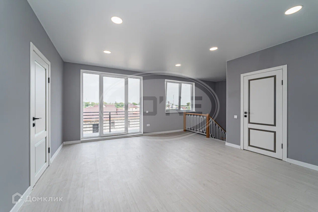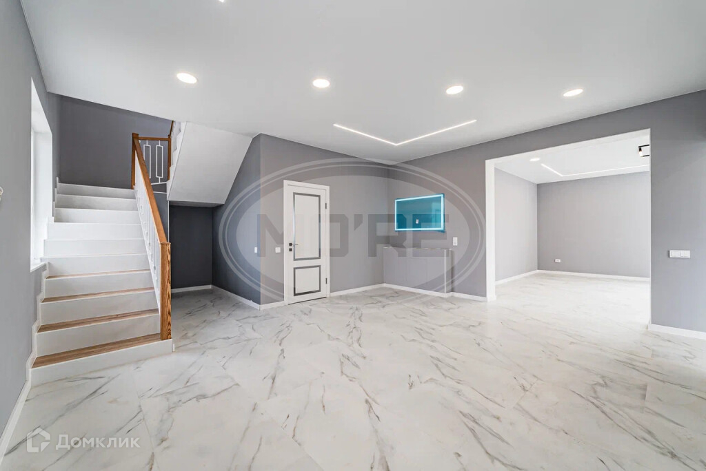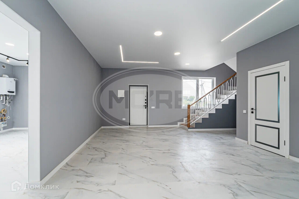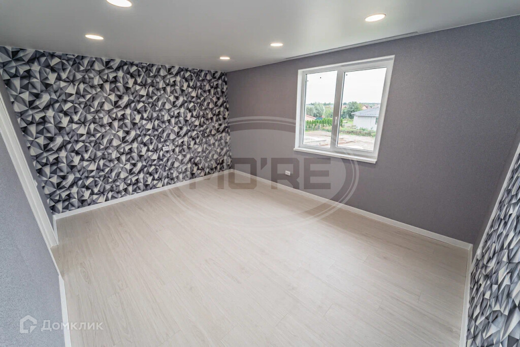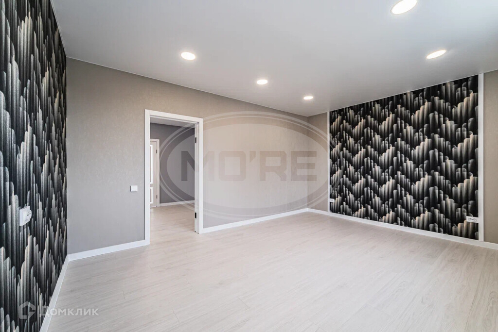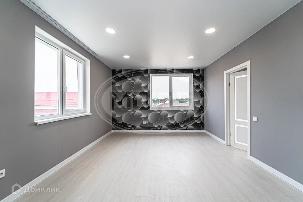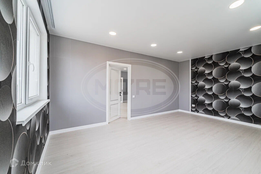 В комнатах поклеены обои и постелен ламинат, все в серо-бежевых классических цветах. В Холлах и кухне-гостиной стены под покраску,на полу крупноформатная плитка керамогранит.