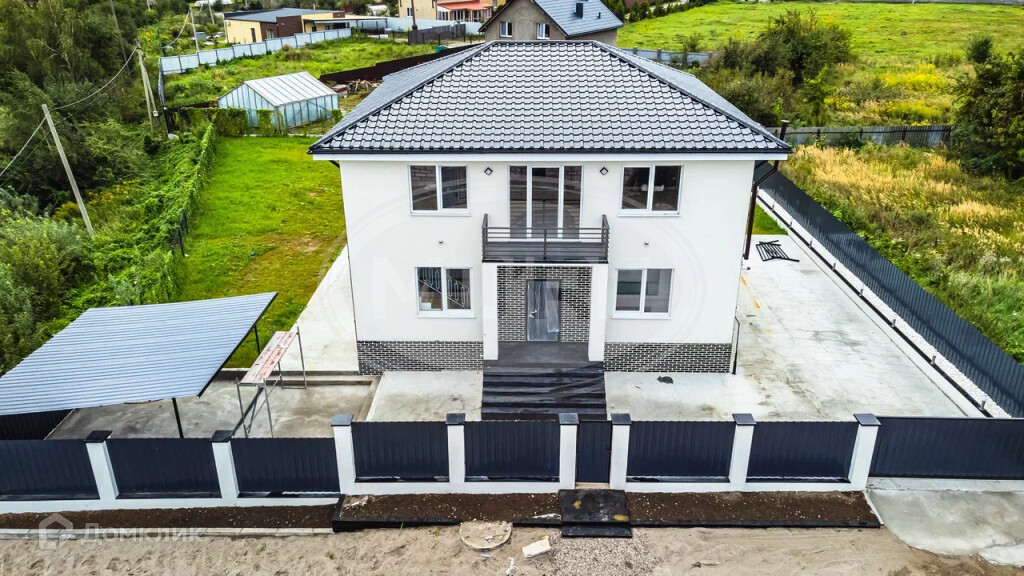 По периметру участка установлен забор, откатные ворота, калитка. Парковочные места на три машины.