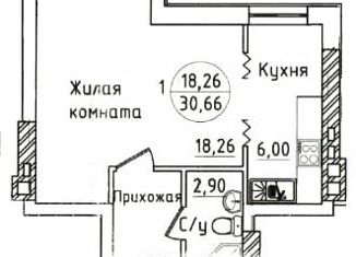 Продажа однокомнатной квартиры, 30.7 м2, улица 70 лет Октября, 19Б