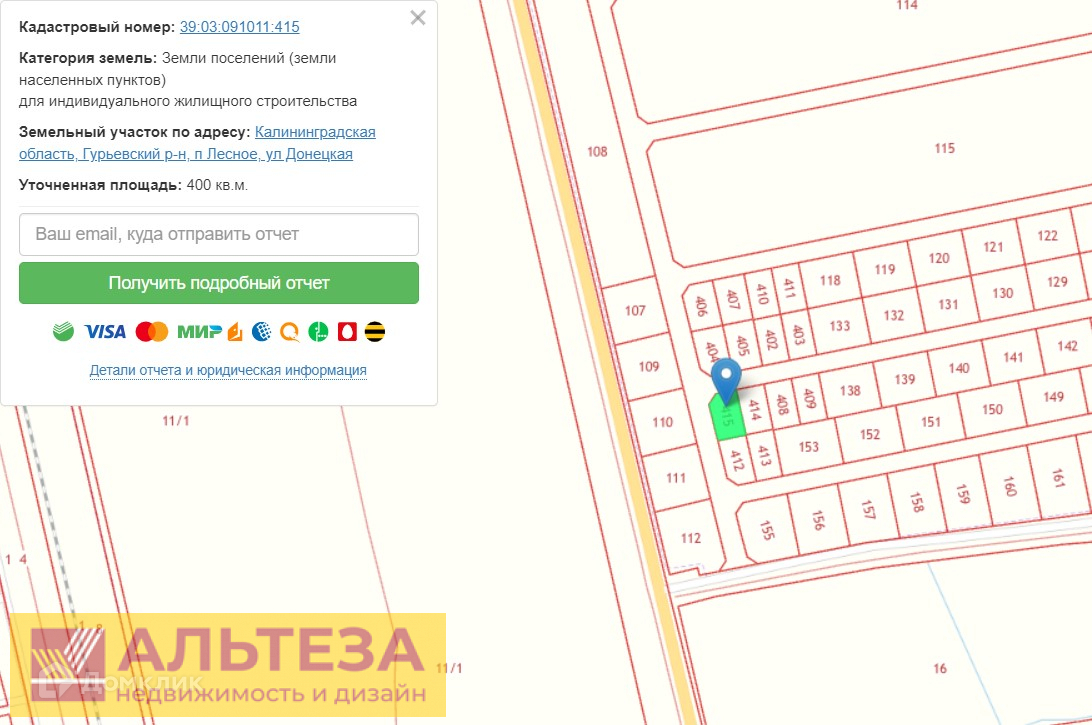 39:03:091011:415, Малое Отважное п, продается участок, 4 соток, Номер лота: 4064136