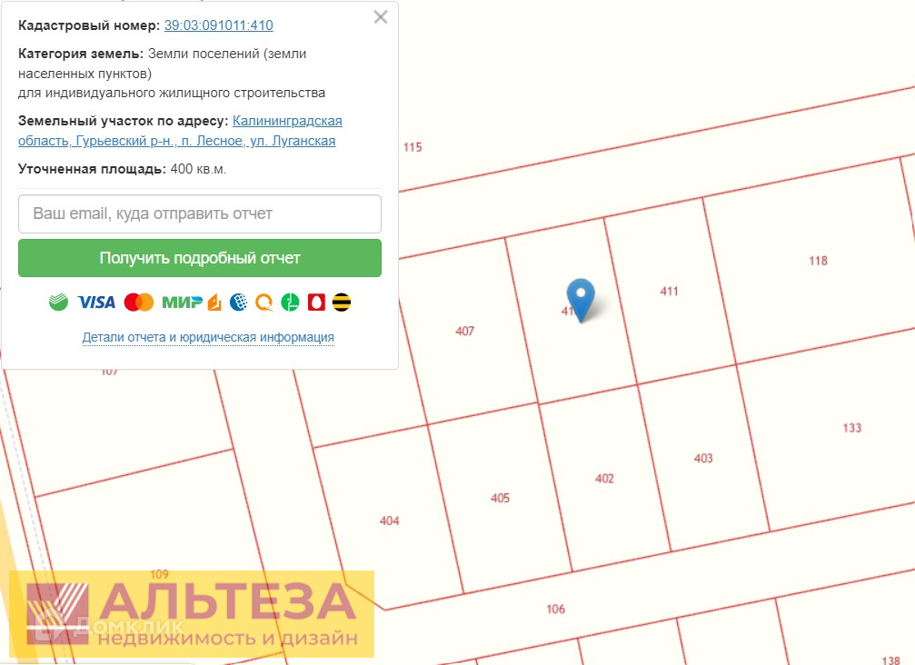39:03:091011:410, Малое Отважное п, продается участок, 4 соток, Номер лота: 4064152