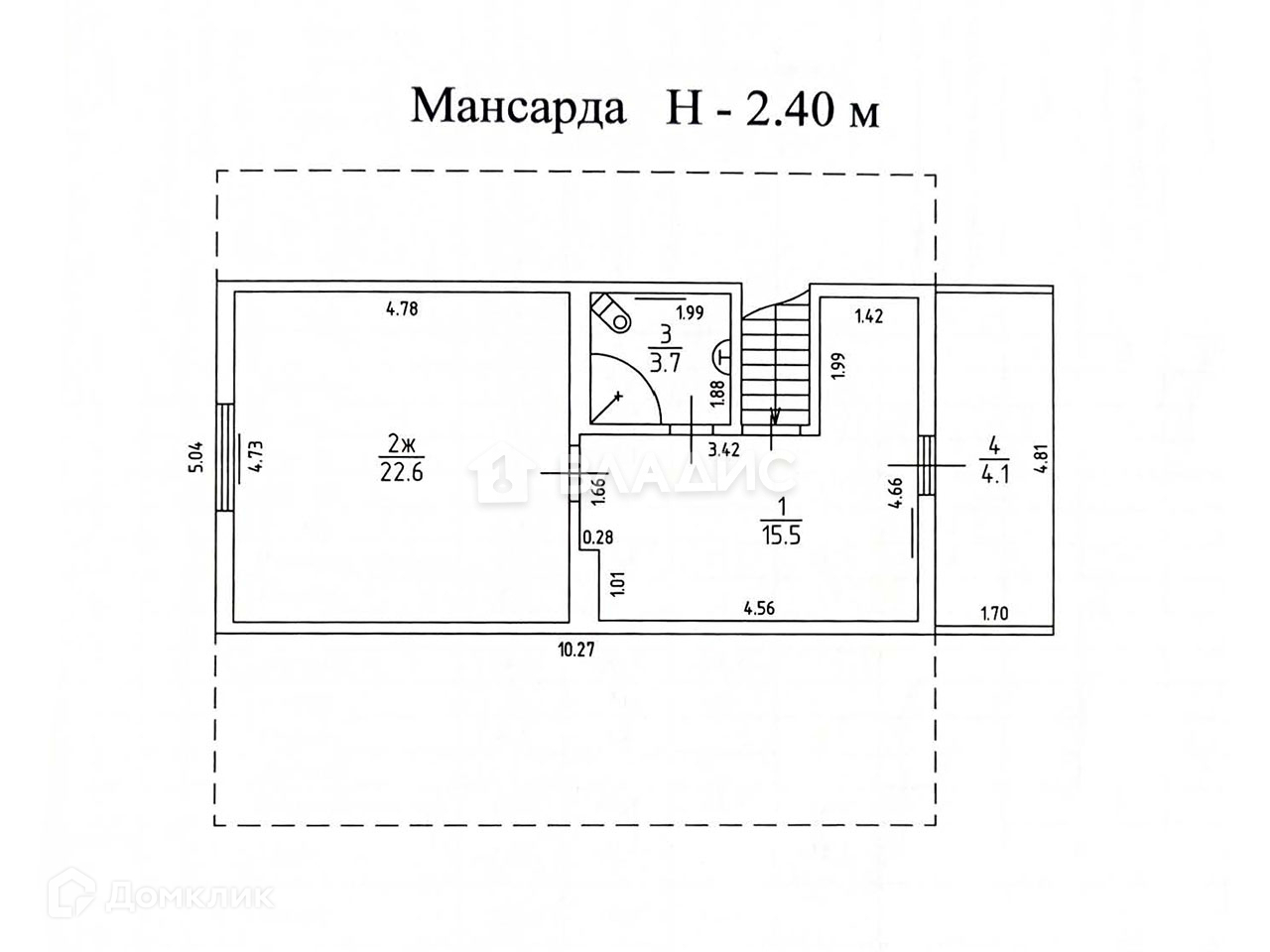 Четвертый уровень (мансарда): просторная жилая комната и лоджия.