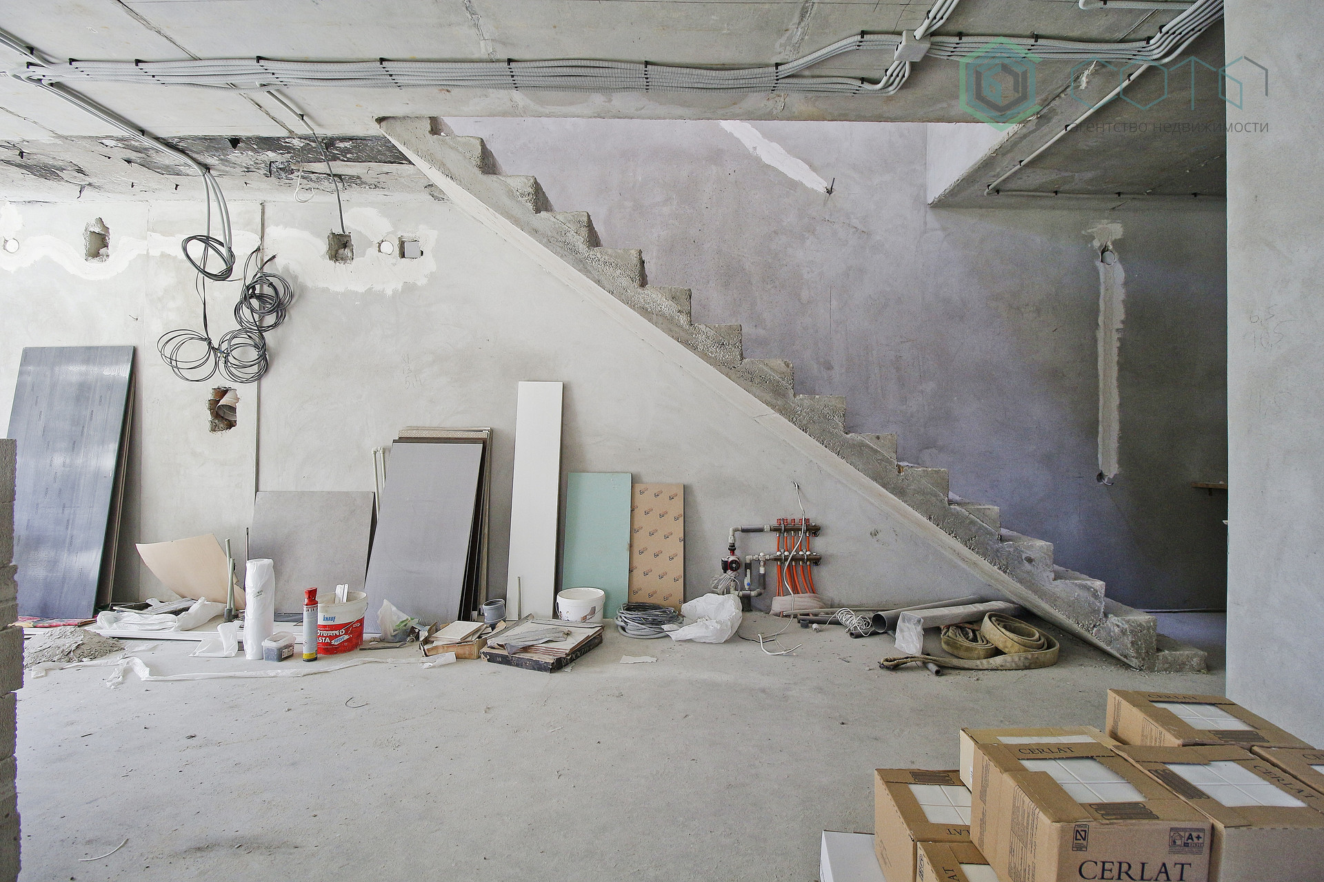 Каким станет этот дом, зависит только от будущих хозяев. Пока это серый ключ. Правда, есть дизайн проект, от которого можно отталкиваться в своих фантазиях. Под этот проект уже завезены стройматериалы, установлены розетки и т. д.