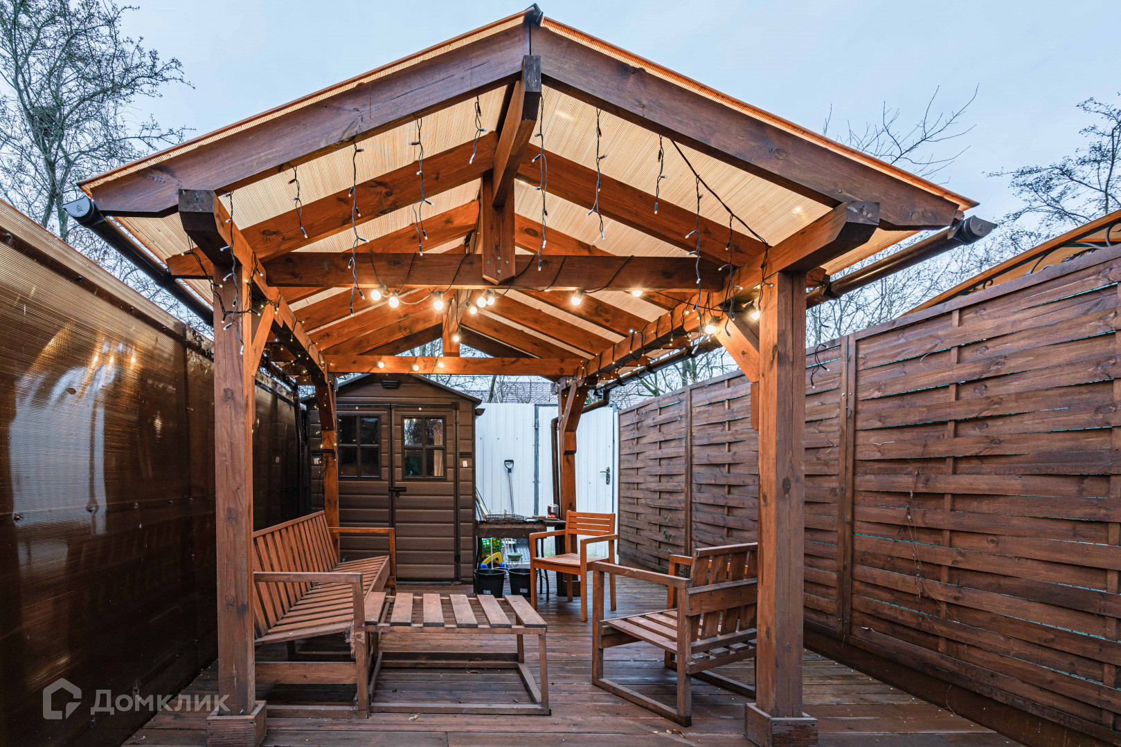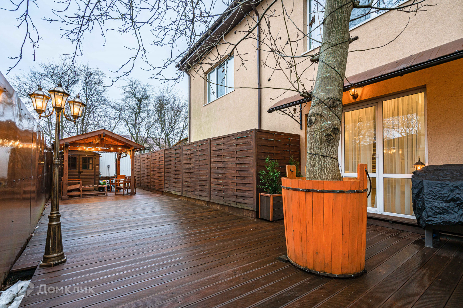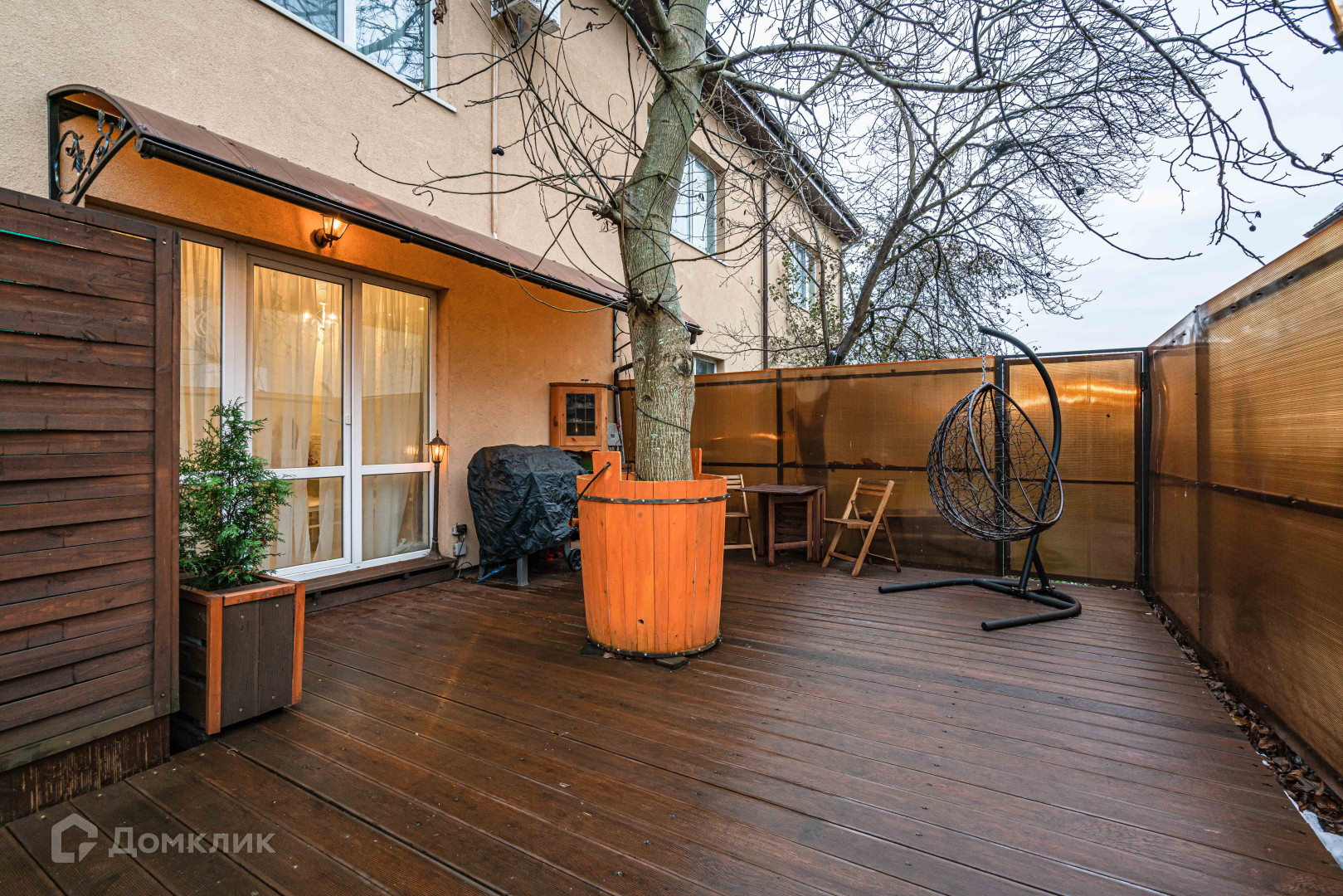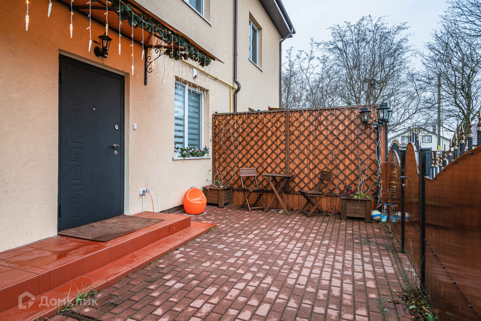 Дом поставлен на охрану.   Два подъезда к дому.  С обратной стороны дома есть выход на террасу. Терраса покрыта качественной террасной доской. Во дворе растет грецкий орех.