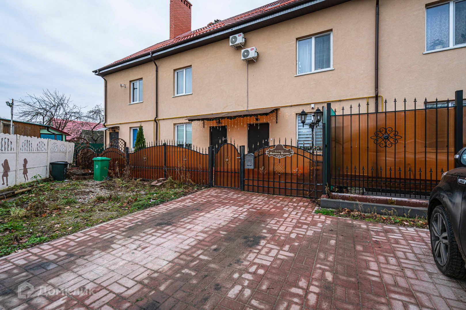 Благоустроена придомовая территория: к таунхаусу удобные подъездные пути с центра поселка через улицы Маршала Жукова и Звездная. Парковочные места на несколько машин.