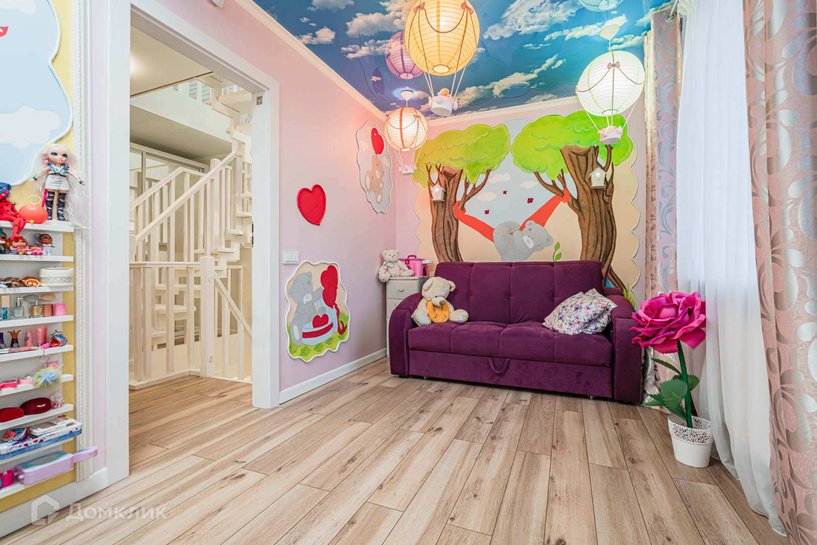 На четвертом этаже под крышей -комната принцессы (есть на фото). Лестница на деревянная металлическом каркасе. В дом вода заходит через  отдельную систему очистки.